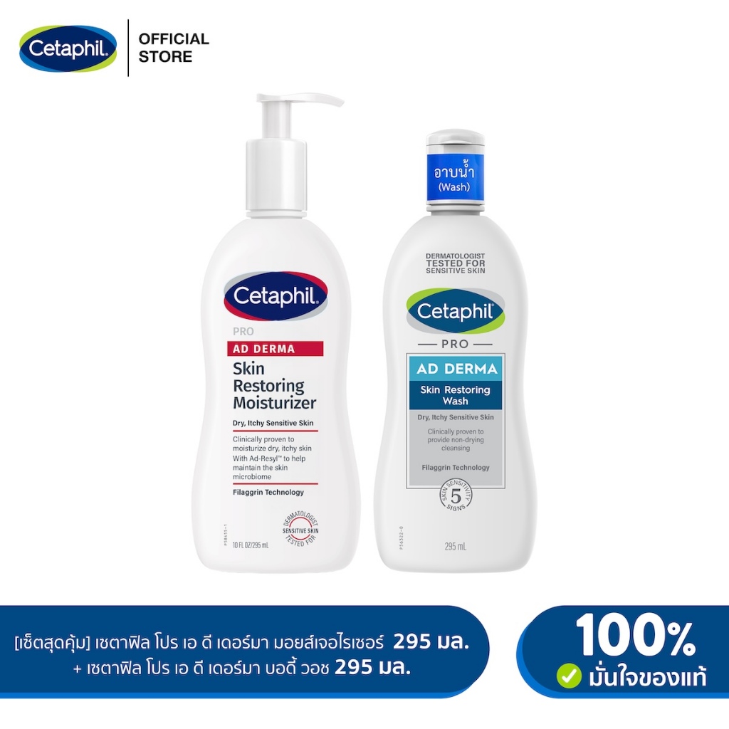 [เซตสุดคุ้ม] Cetaphil Pro Ad เซตาฟิล โปร เอ ดี เดอร์ มา สกิน 295มล. (ครีมอาบน้ำ+ครีมบำรุงผิว) (แพ็คเกจใหม่)