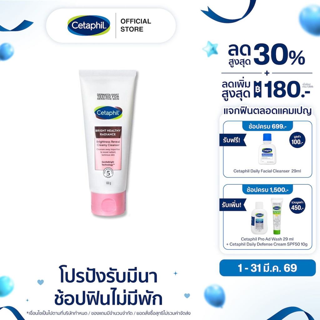 เซตาฟิล Cetaphil Bright Healthy Radiance Brightness Reveal Creamy Cleanser ครีมล้างหน้า เพื่อผิวกระจ่างใส 100 g.