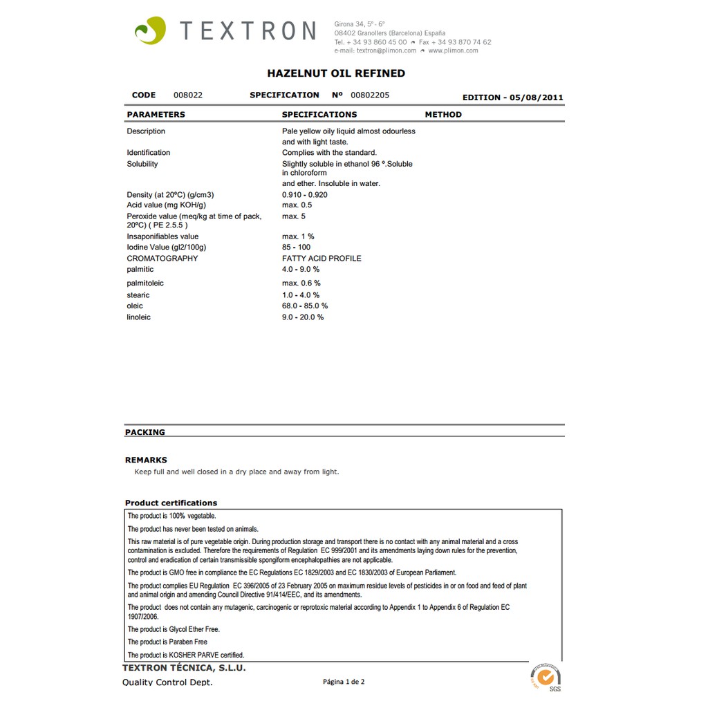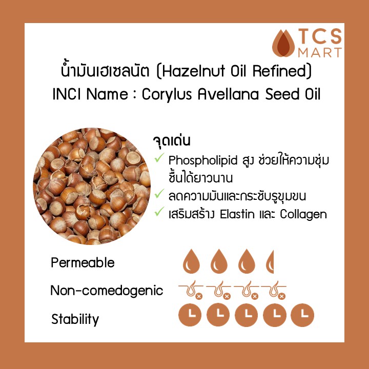 น้ำมันฮาเซลนัต 100% (Hazelnut Oil Refined) 500 ml ฮาเซลนัท เฮเซลนัท