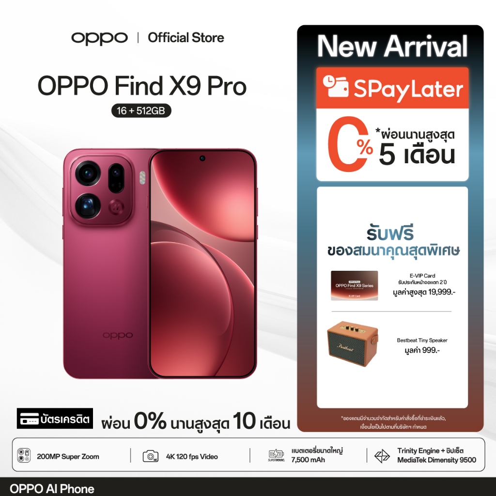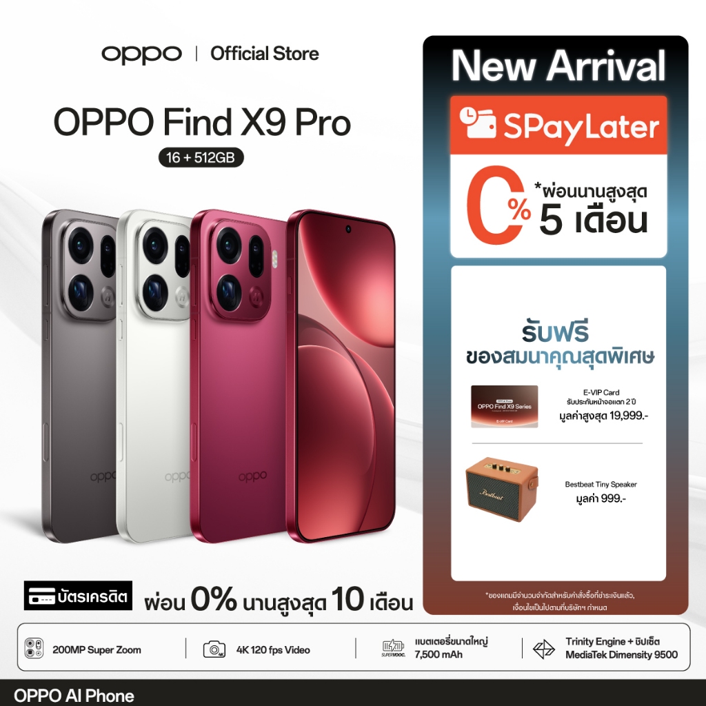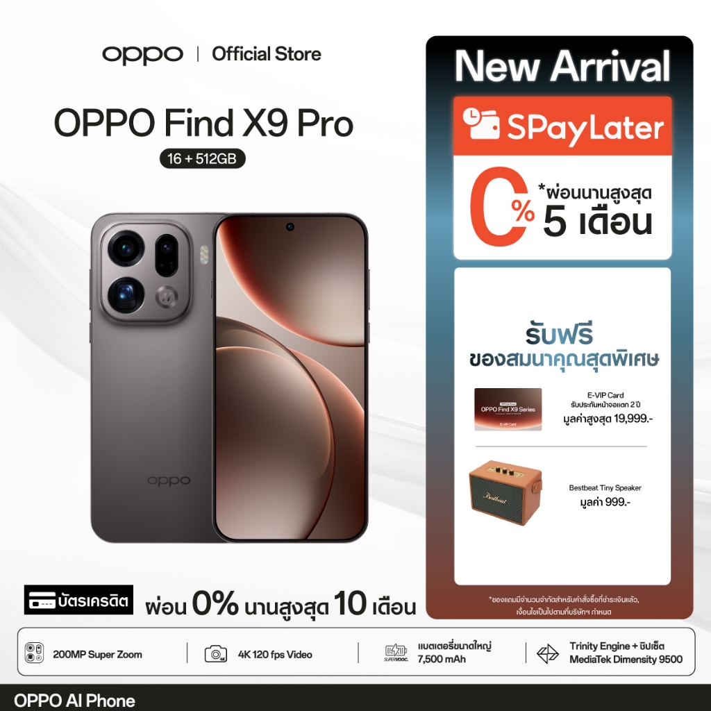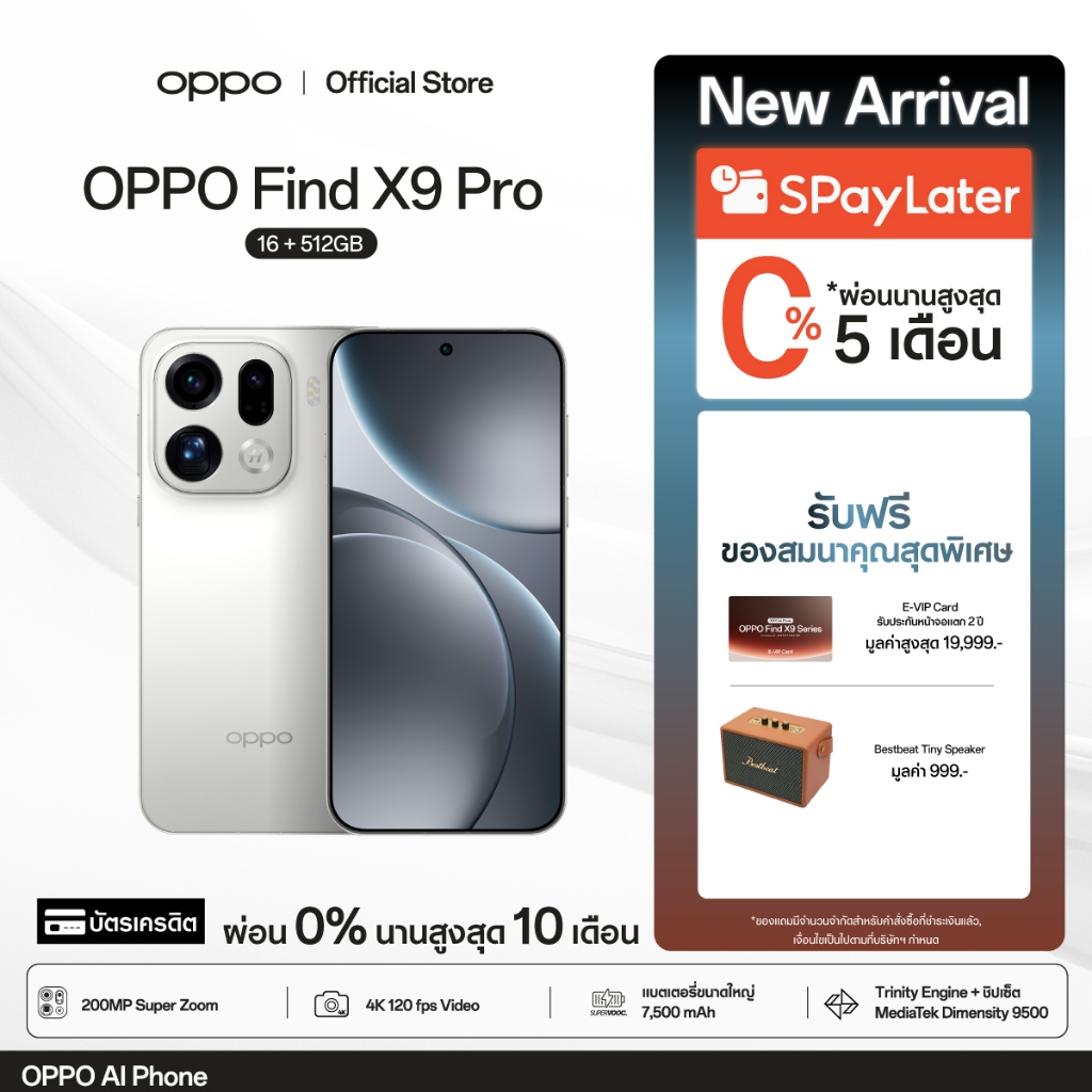[New] OPPO Find X9 Pro(16+512G) โทรศัพท์มือถือ 200MP Hasselblad Telephoto 120x Super Zoom ColorOS 16 ชาร์จไว 80W แบต7500