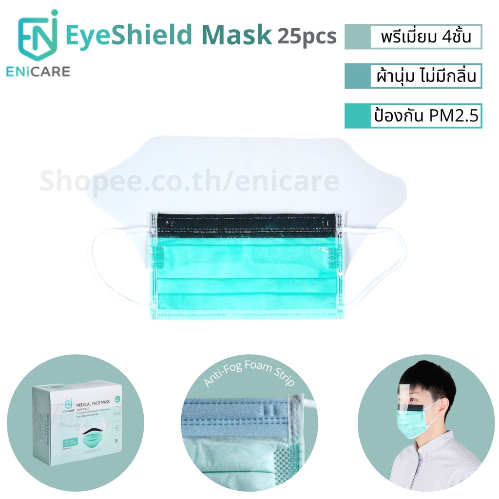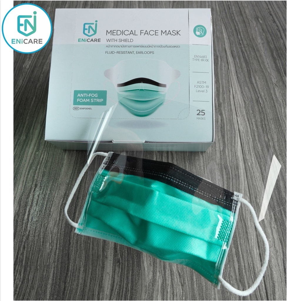 ENiCARE Medical Face Mask with Shield 25pcs หน้ากากอนามัยทางแพทย์แบบมีหน้ากาก 25ชิ้น แมสเฟสชิลด์