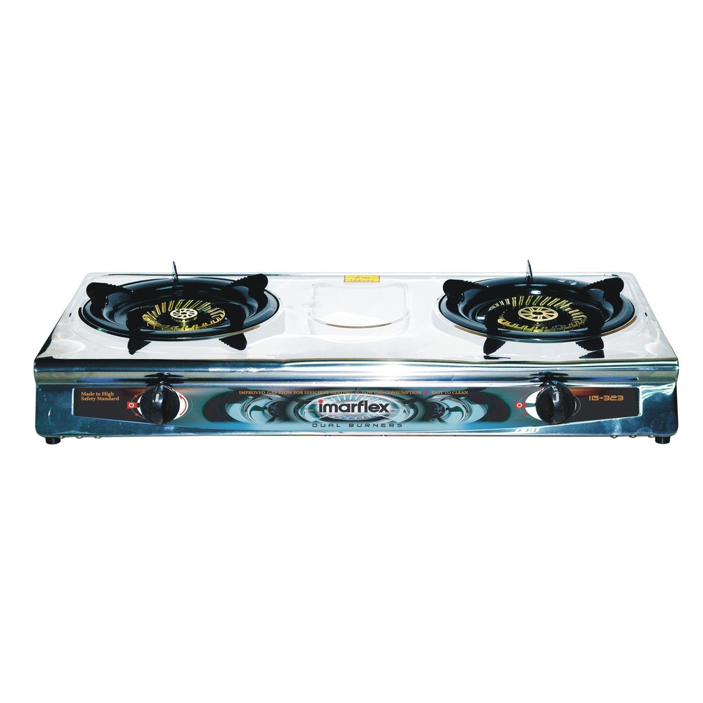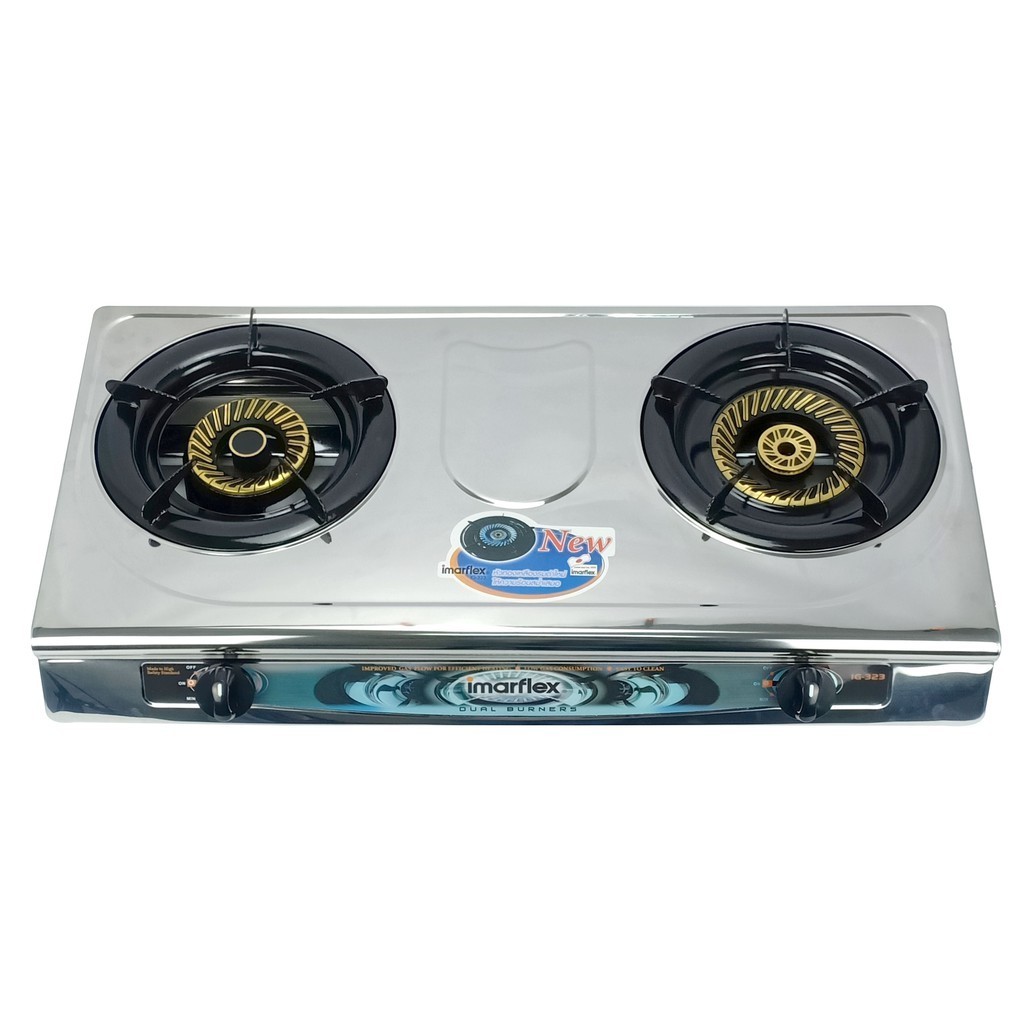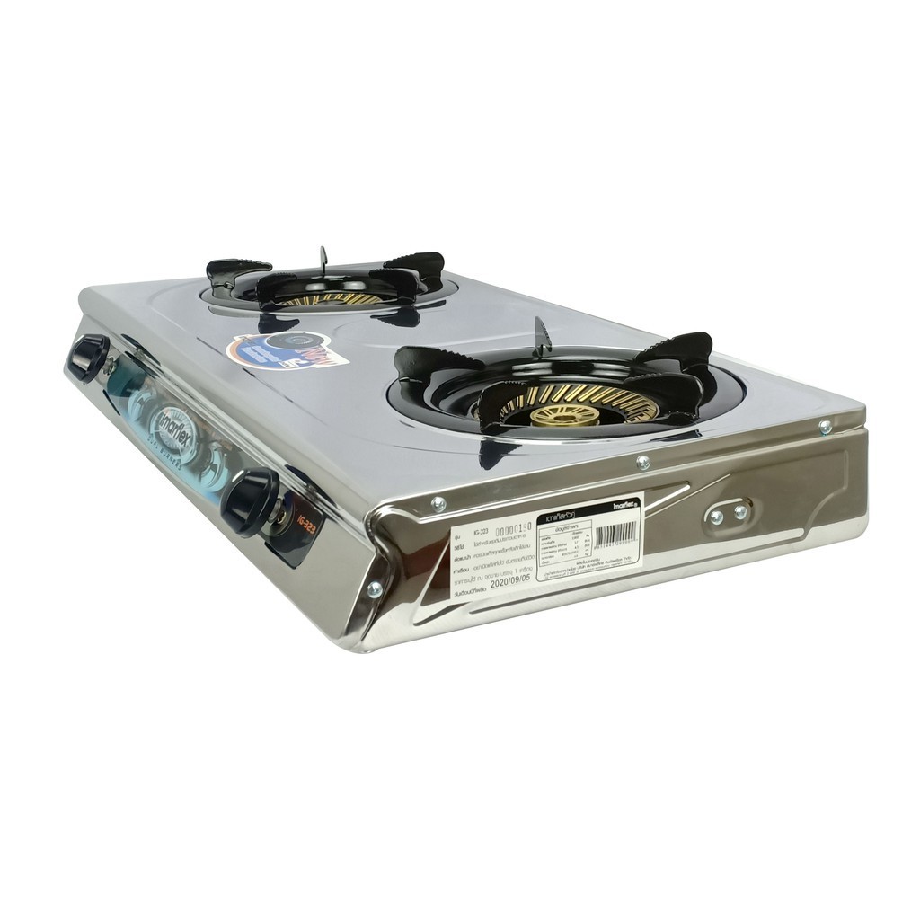 [E-Tax] IMARFLEX เตาแก๊สหน้าสแตนเลสหัวคู่ หัวทองเหลือง รุ่น IG-323
