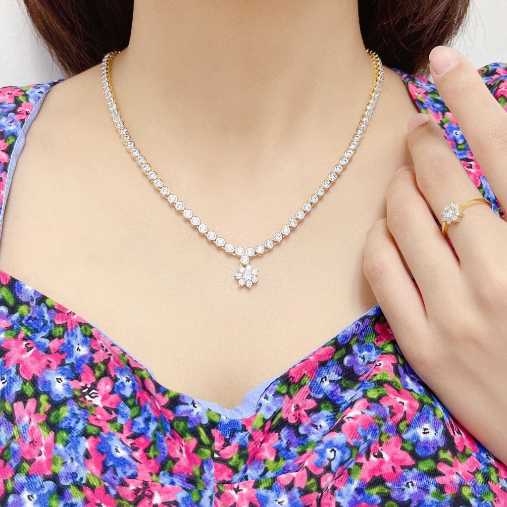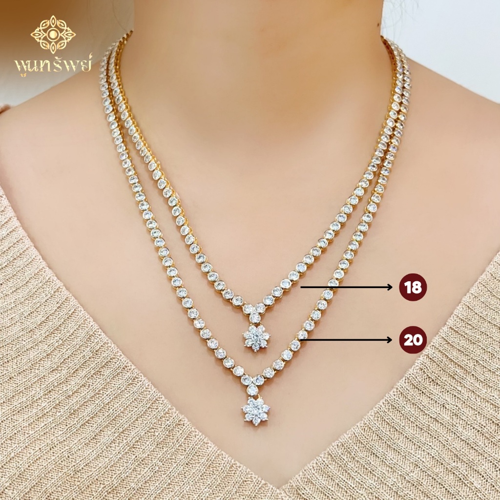 ส่งฟรี สร้อยคอเพชรดอกไม้ เครื่องประดับไทย พูนทรัพย์ มีใบรับประกัน ND7N500