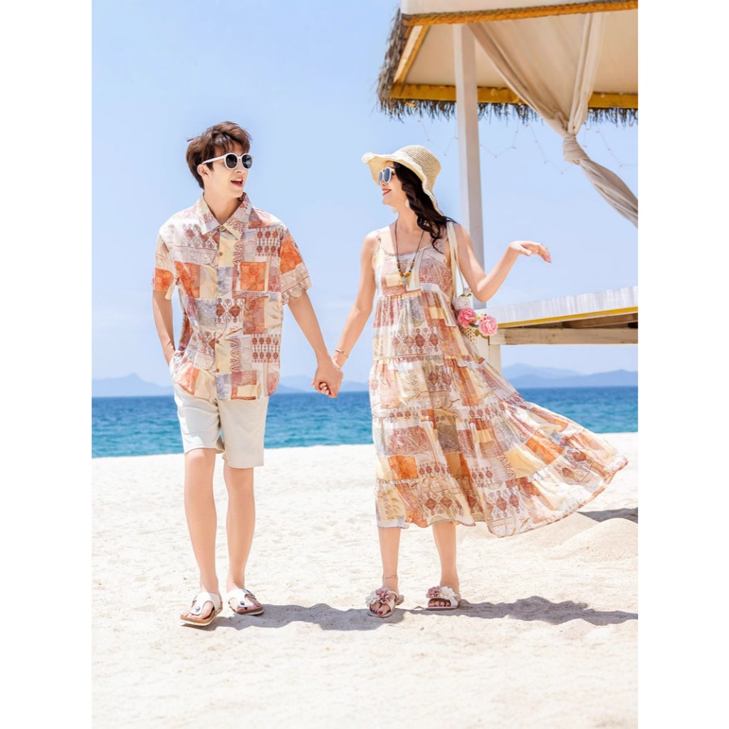 ชายหาดฮาวายครอบครัวจับคู่ชุดผู้ชายเสื้อโปโลผู้หญิงชุดยาวเด็กสั้นกางเกงสาวผ้าคลุมไหล่