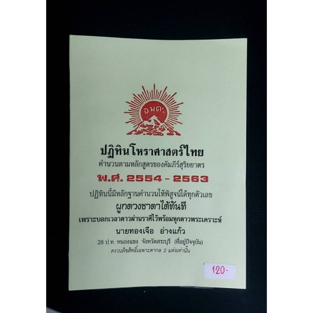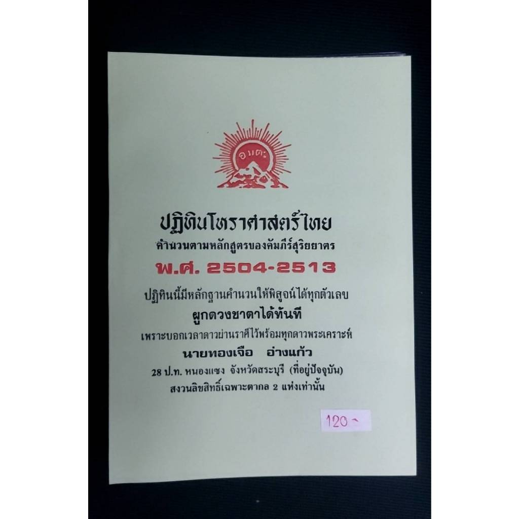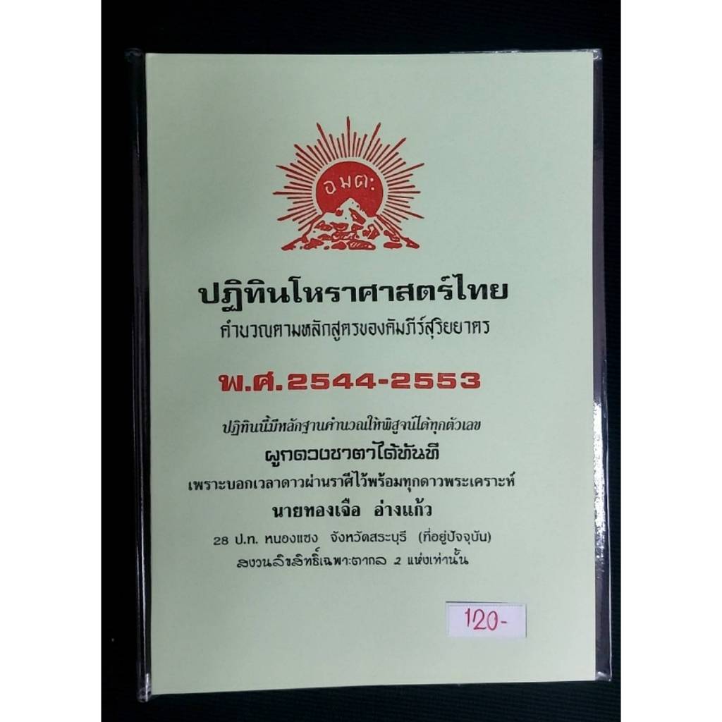 ปฏิทินโหราศาสตร์ไทย คำนวนตามหลักสูตรของคัมภีร์สุริยยาตร โดย นายทองเจือ อ่างแก้ว ปฏิทิน 10 ปี