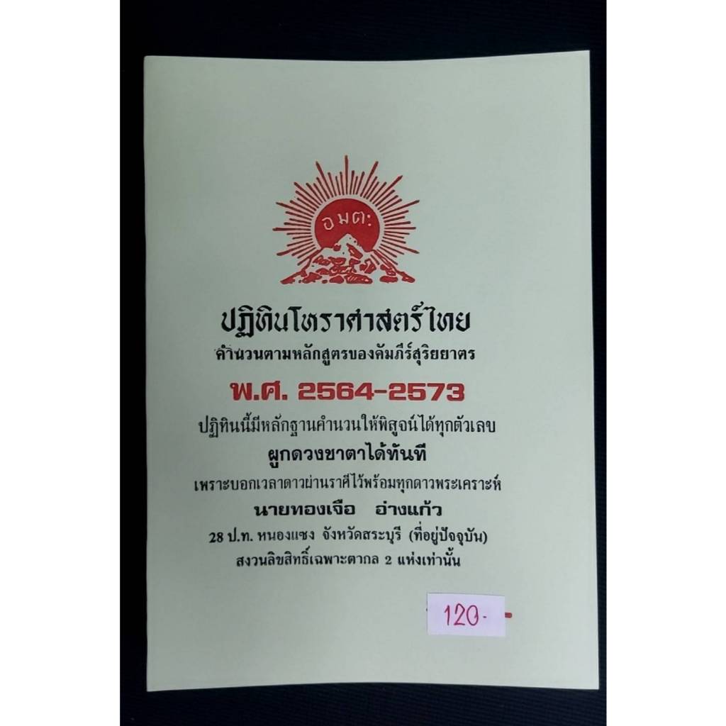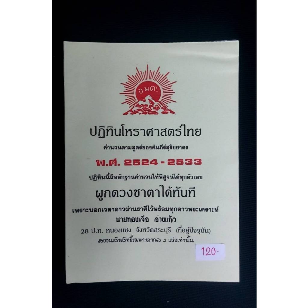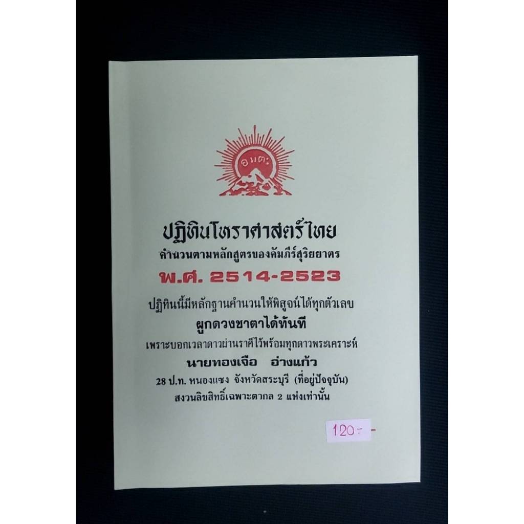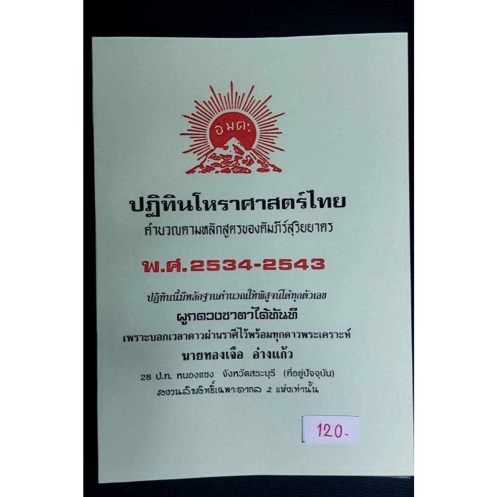ปฏิทินโหราศาสตร์ไทย คำนวนตามหลักสูตรของคัมภีร์สุริยยาตร โดย นายทองเจือ อ่างแก้ว ปฏิทิน 10 ปี