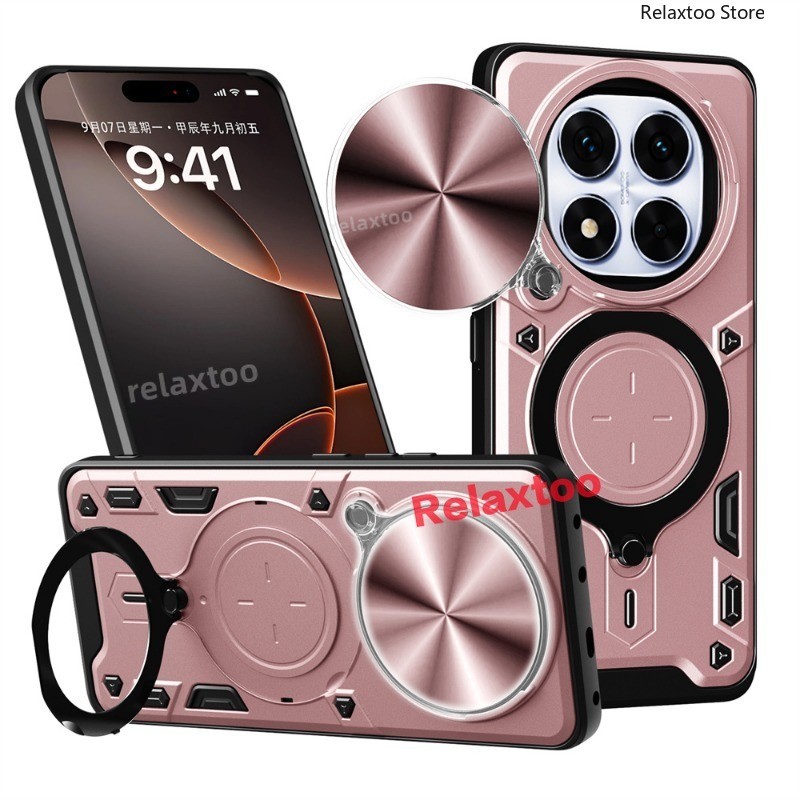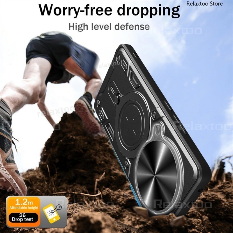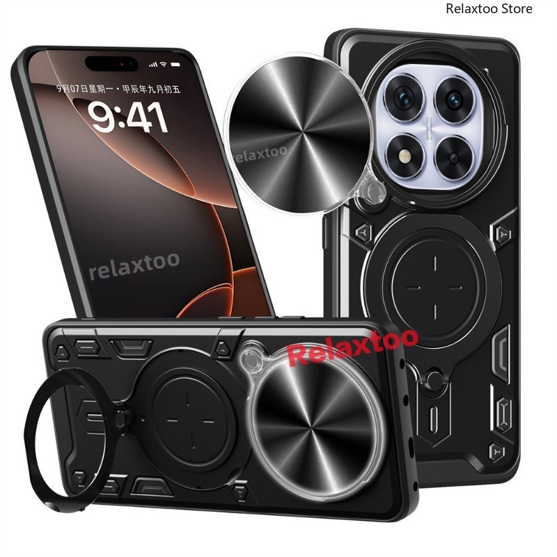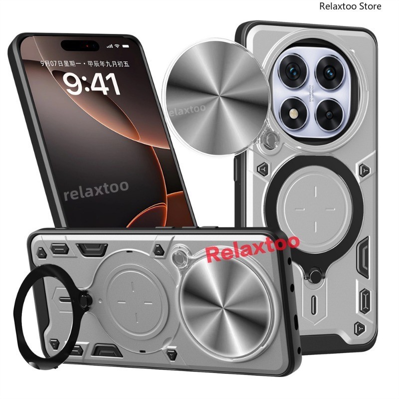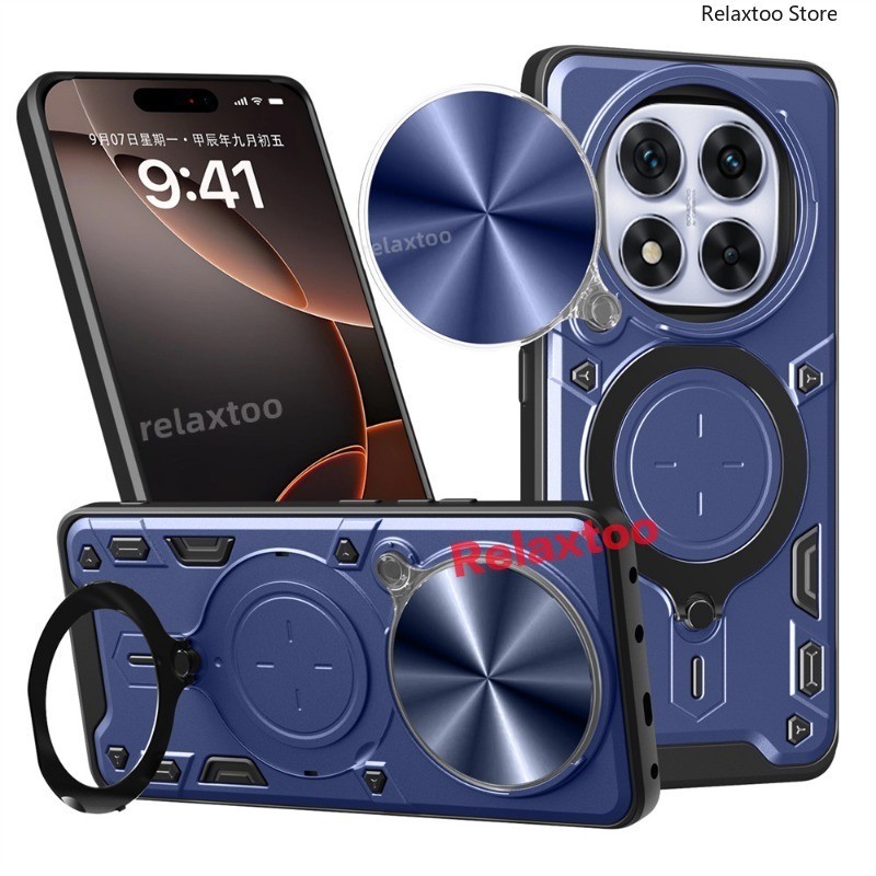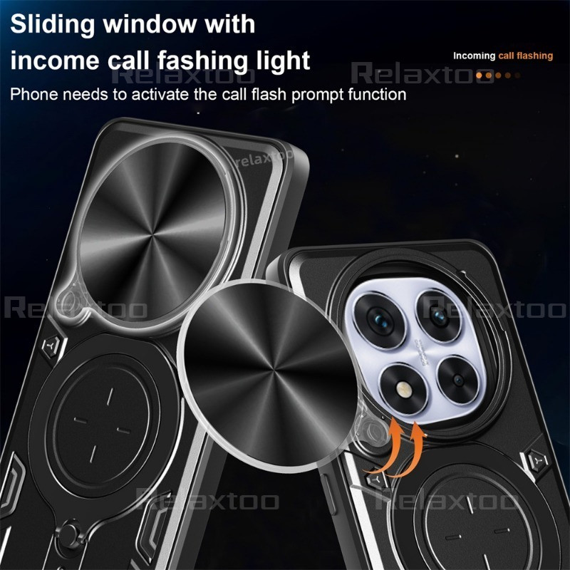 โลหะแม่เหล็กรถผู้ถือแหวนปลอกสําหรับ Xiaomi Redmi Note14 หมายเหตุ 14 Pro Plus + 14Pro + Note14Pro + 4G 5G สไลด์ Push กล้อง Hard เคสโทรศัพท์กันกระแทกป้องกันกลับปลอกฝาครอบ