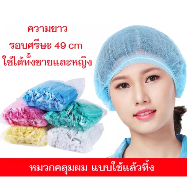 NC Hardware หมวกตัวหนอน เกรด A เเบบ เย็บ 2 เส้น หมวกคลุมผมใยสังเคราะห์ มี 4 สี Disposable Non woven Cap 50/100pcs