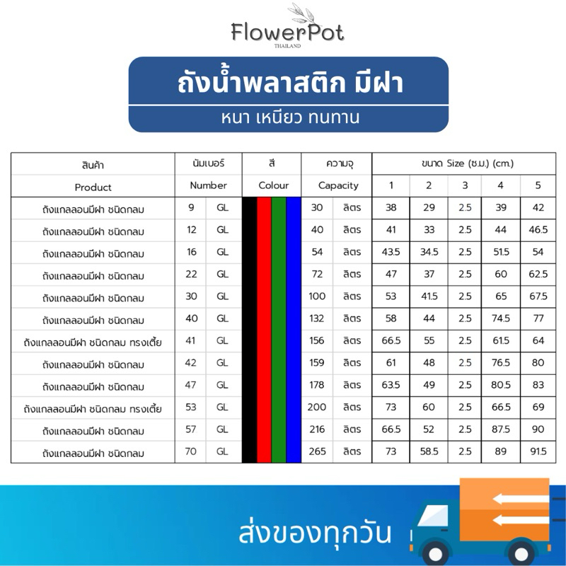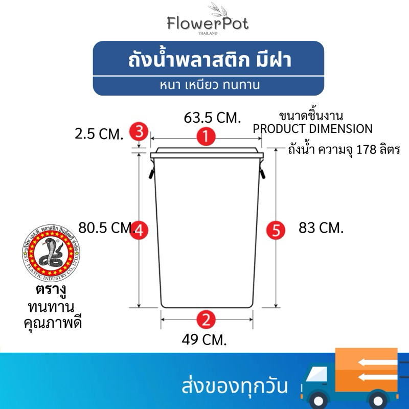 ถังแกลลอน พร้อมฝา ความจุ 178 ลิตร GL47 ถังน้ำมีหูล็อค