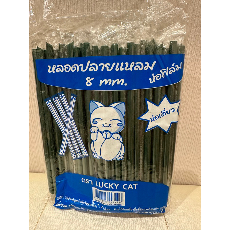 หลอดตรงปลายแหลม 8 มิล หุ้มฟิล์ม 100 เส้น จากร้านหลอดงอ ตราแมว ค่ะ ดูดไข่มุกไม่ได้ค่ะ ยาว 21 เซ็น