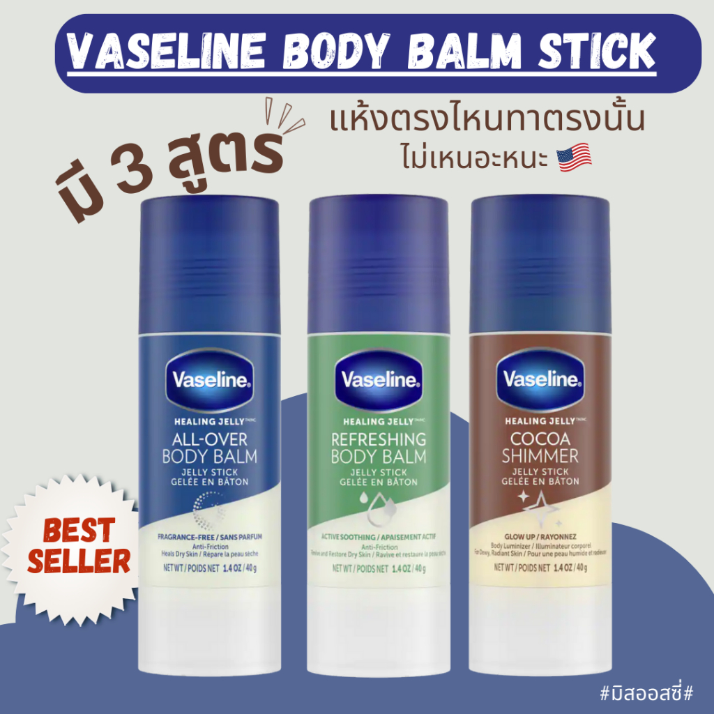 Vaseline Body Balm Jelly Stick 40 g วาสลีน Petroleum Jelly แบบแท่ง ไม่เลอะมือ จาก USA 🇺🇸🇺🇸