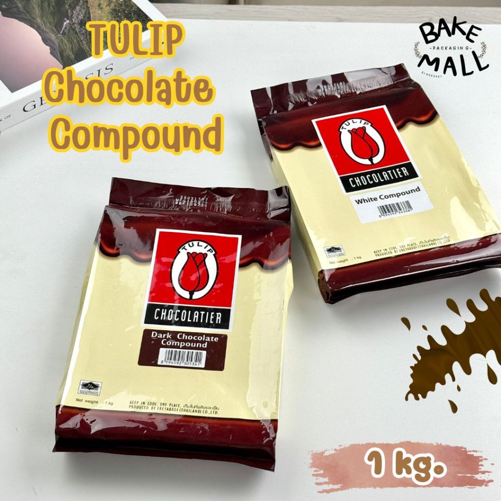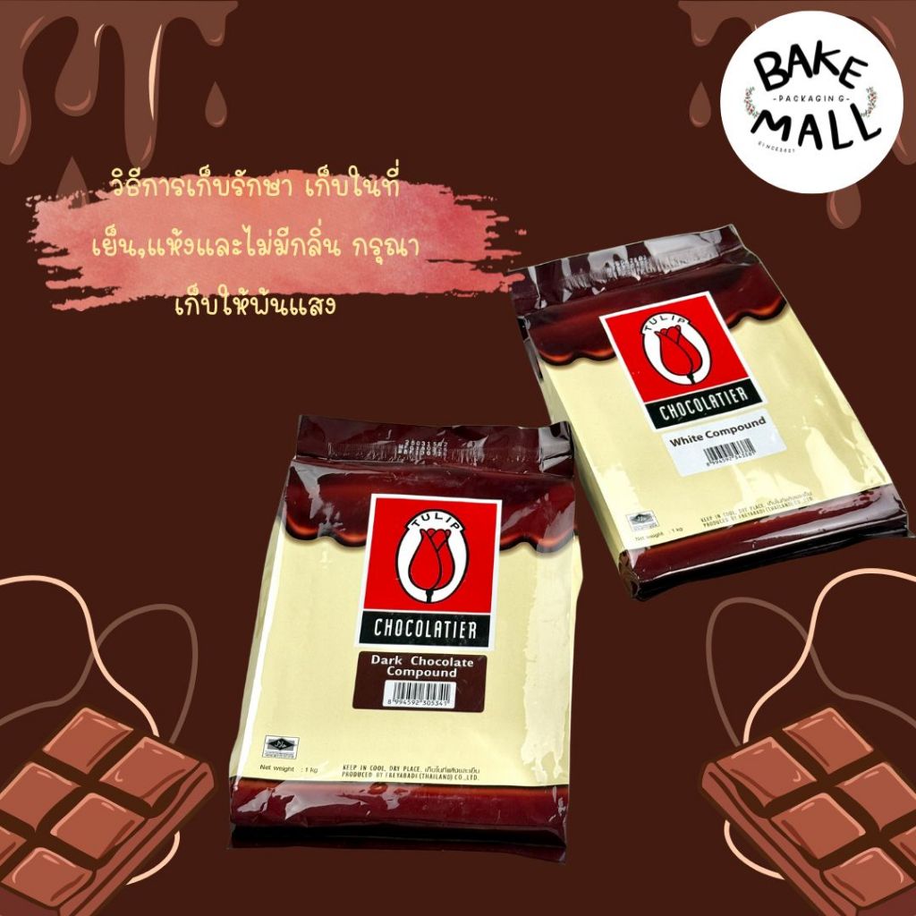 TULIP🍫✨ ช็อกตุ๋นทิวลิป (แท่ง) ดาร์กช็อกโกแลต และไวท์ช็อกโกแลต 1 กก. สำหรับการเคลือบ ตกแต่งขนมเค้ก chocolate compound