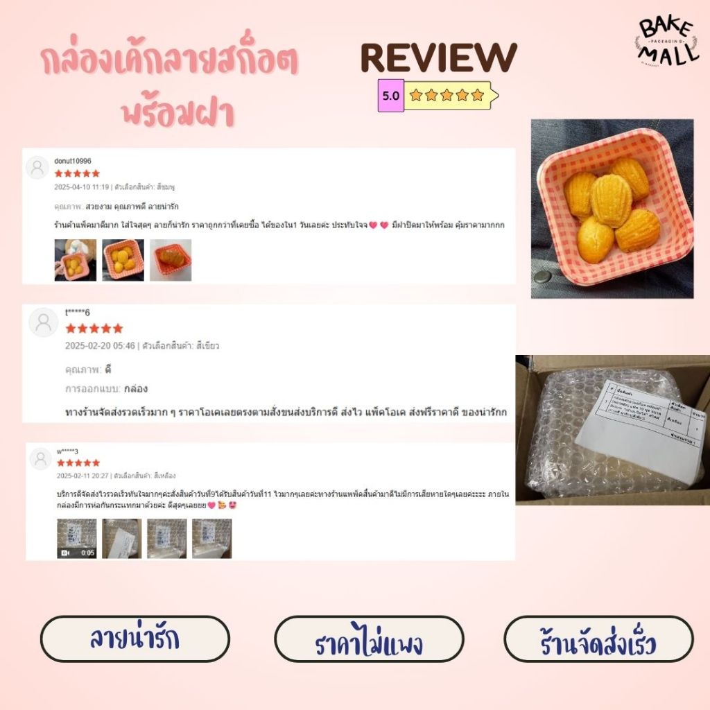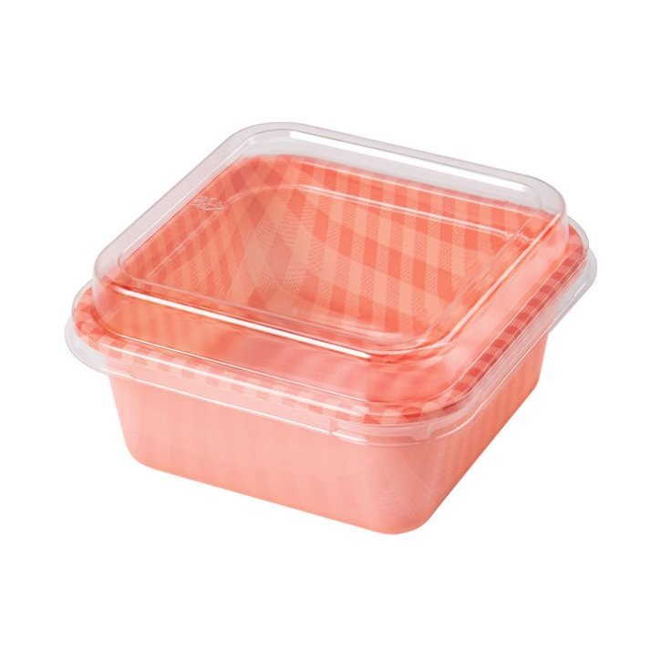 กล่องเค้กลายสก็อต พร้อมฝา (พลาสติก) แพ็ค 10 ชุด ขนาด 9x9 cm. *เข้าอบไม่ได้* สไตล์เกาหลี น่ารักๆ
