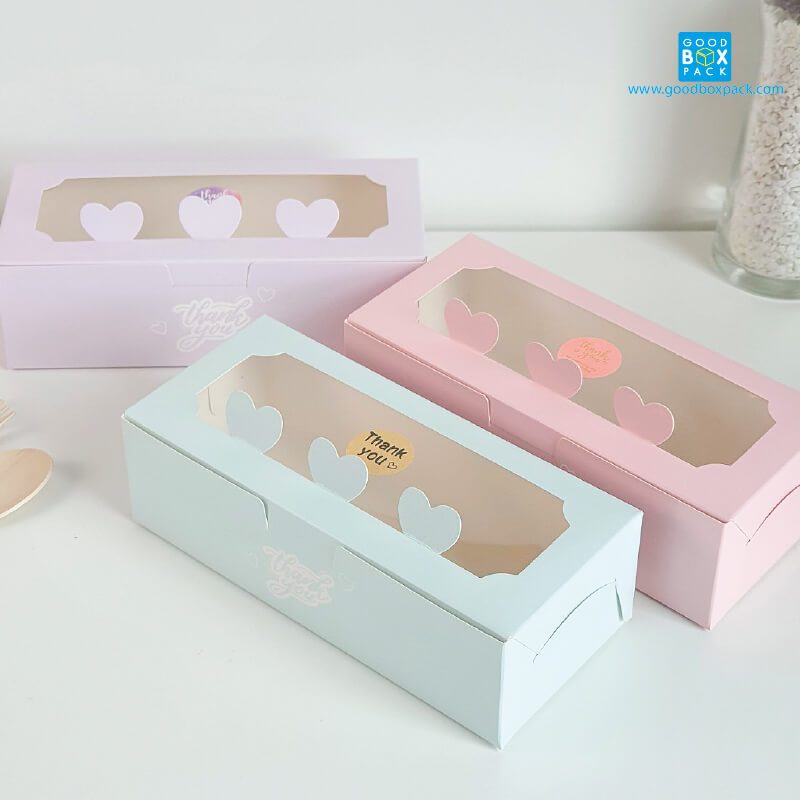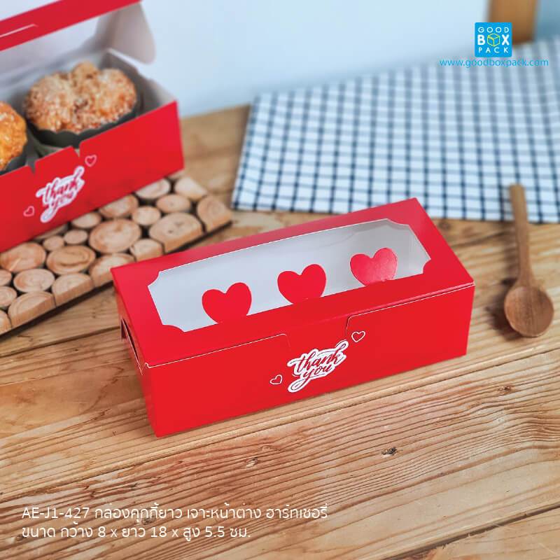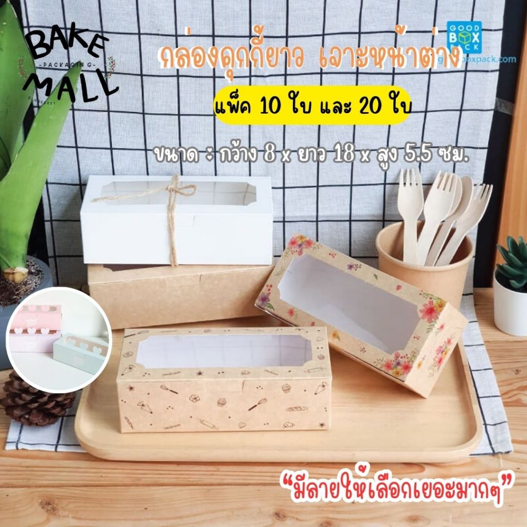ขายดีมาก🍰✨🎉 กล่องคุกกี้ยาว เจาะหน้าต่าง และไม่เจาะหน้าต่าง แพ็ค 10 - 20 ใบ ขนาด 8 x 18 x 5.5cm. ใส่เบเกอรี่่ ขนม ของฝาก