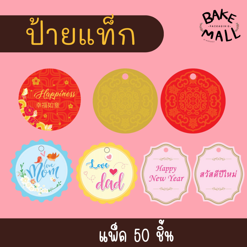✨🚚 ป้ายแท็ก แพ็ค 50 ใบ ป้ายห้อยสินค้า สวัสดีปีใหม่ Happiness มงคล รักแม่ รักพ่อ ขนาดดูรายละเอียดสินค้าด้านล่างได้