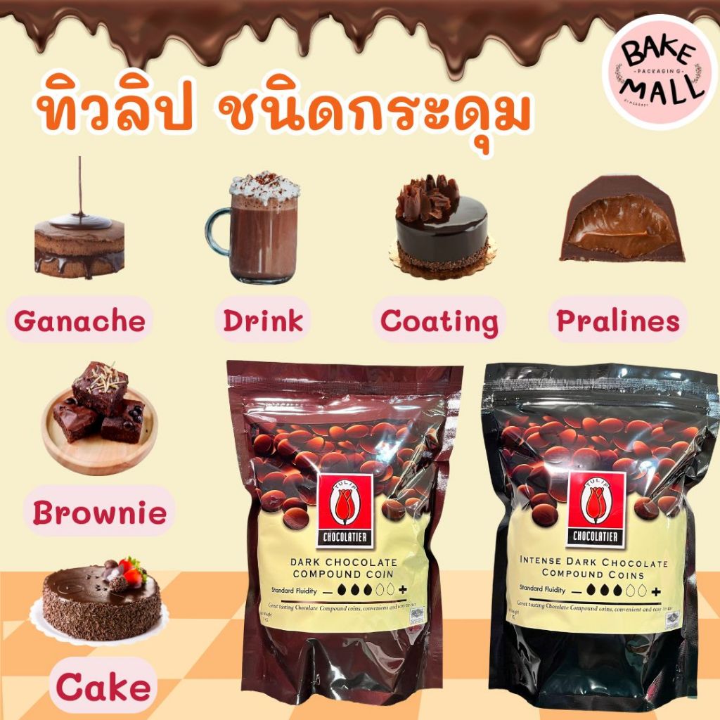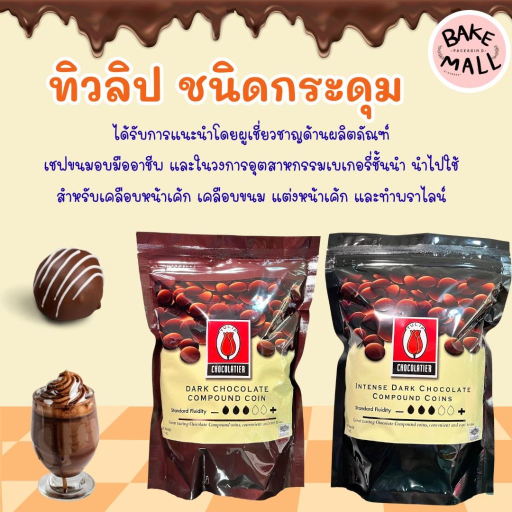 ✨✨🍫 ช็อกเหรียญ ไวท์เหรียญ ทิวลิป ชนิดกระดุม 1 กิโลกรัม อินเทนส์ดาร์กช็อกโกแลตคอมพาวด์ และ ดาร์กช็อกโกแลตคอมพาวด์