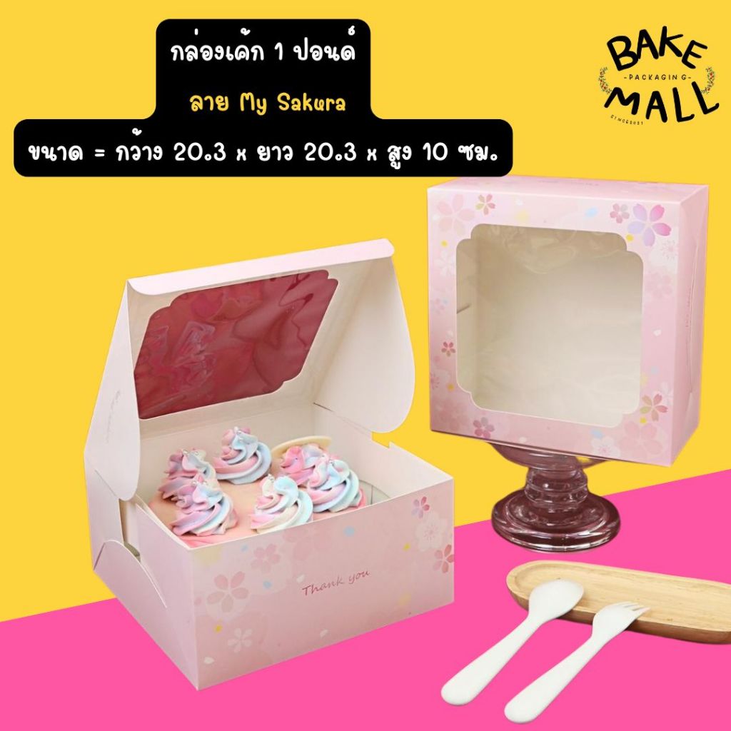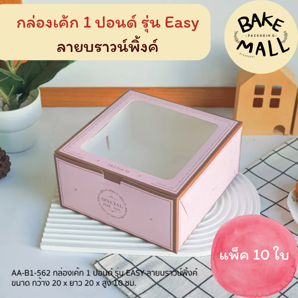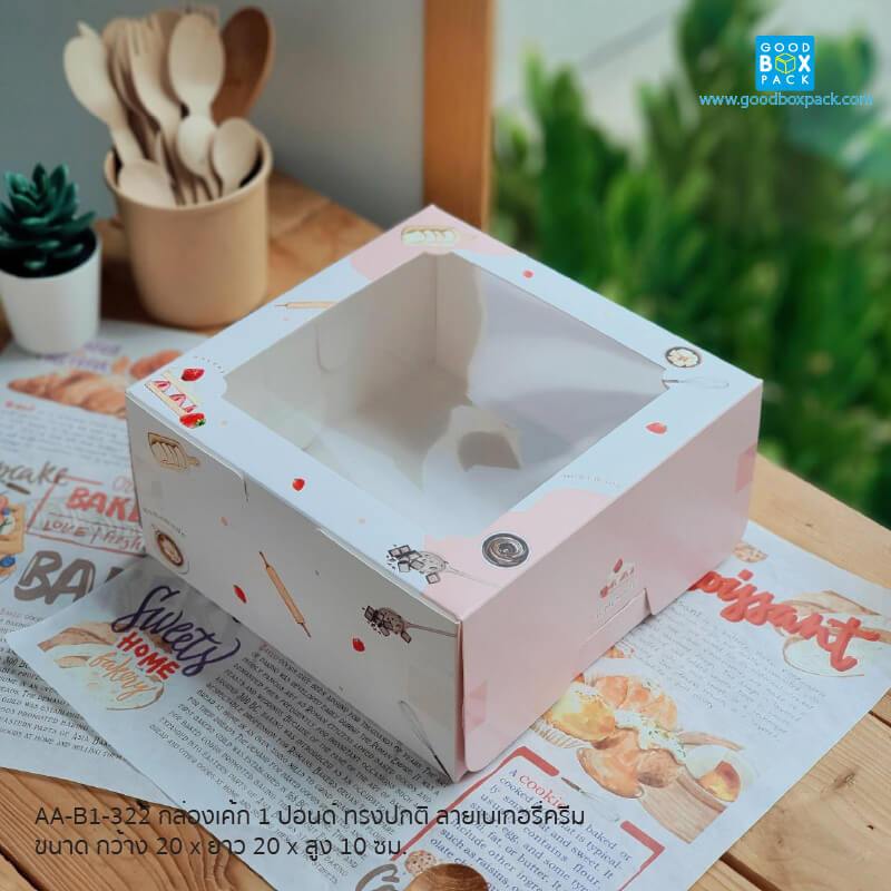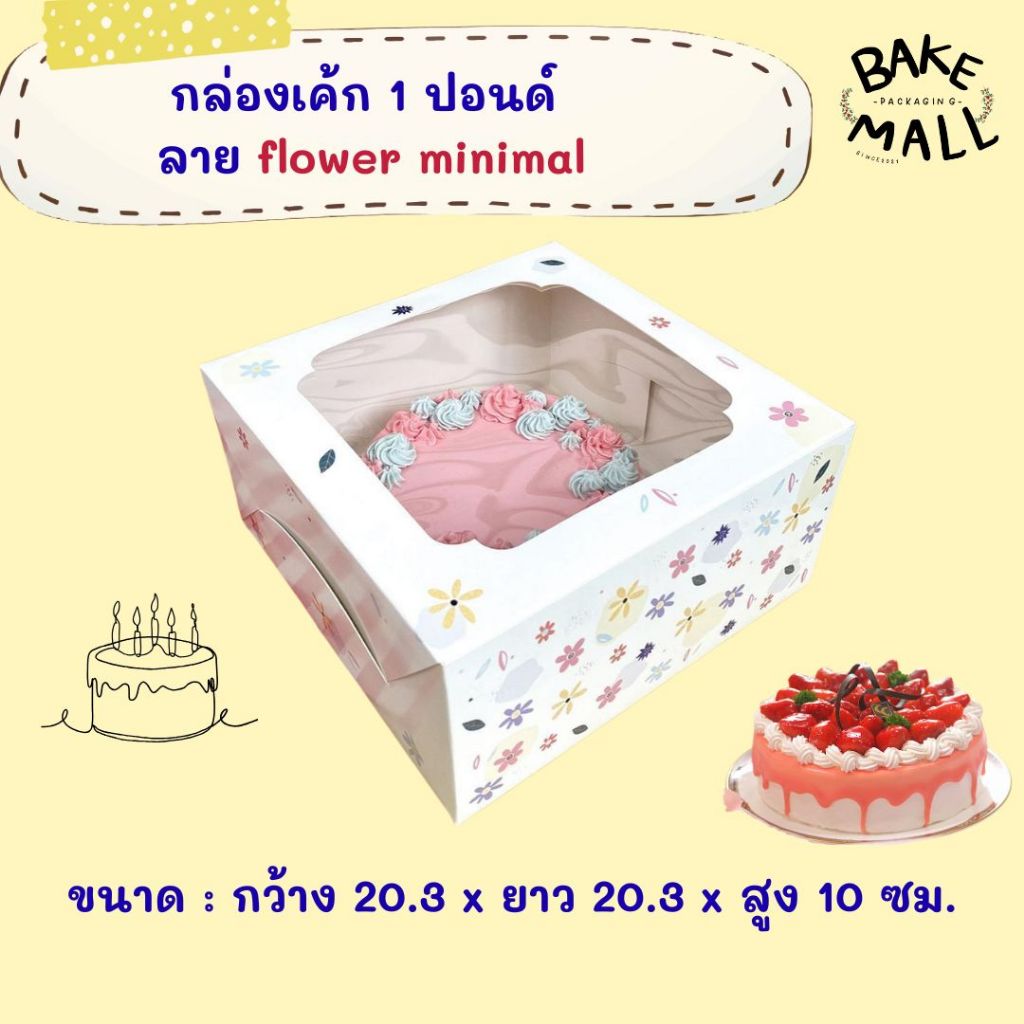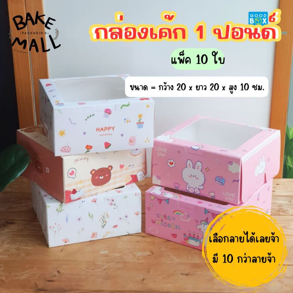 ขายดีมาก🚀🚚 กล่องเค้ก 1 ปอนด์ ทรงปกติ ขนาด 20 x 20 x 10 cm. แพ็ค 10 ใบ แบบลายน่ารักๆกล่องใส่เค้ก1p ใส่เบเกอรี่