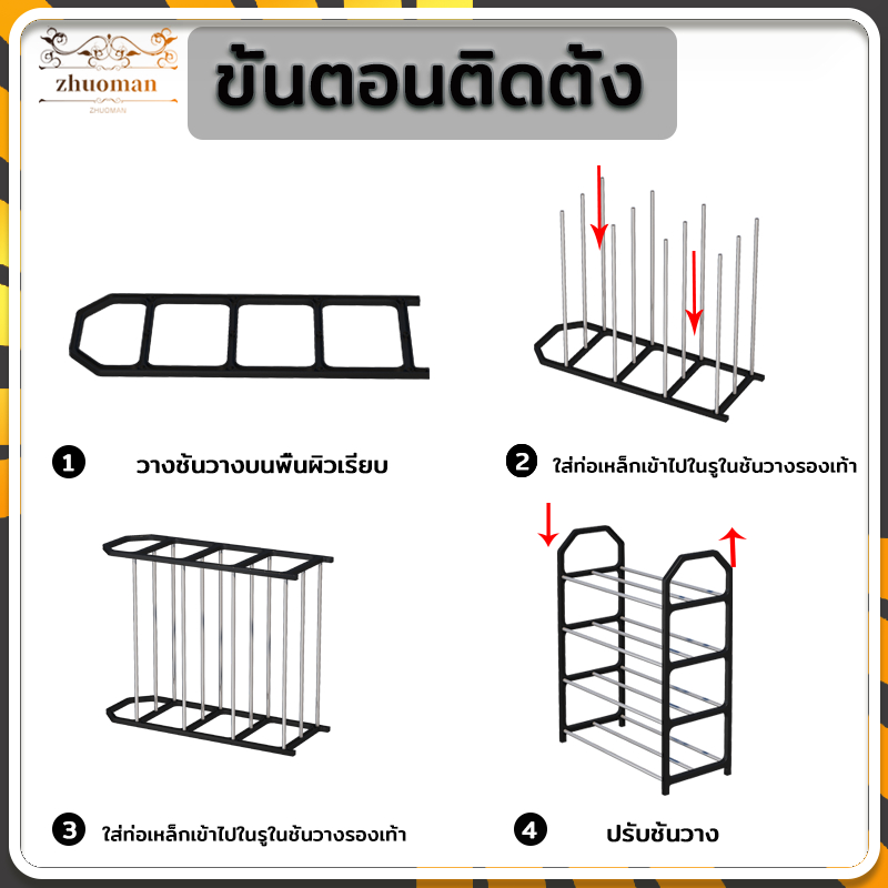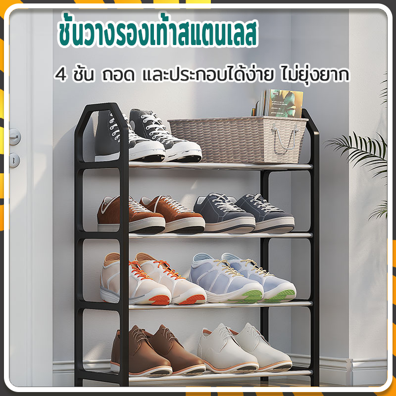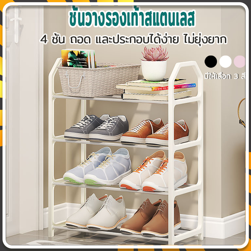 ชั้นวางรองเท้า ชั้นวางรองเท้า 4ชั้ ประหยัดพื้นที่ โครงสร้างแข็งแรง ถอด และประกอบได้ง่าย ชั้นวางรองเท้าสแตนเลส 4ชั้น