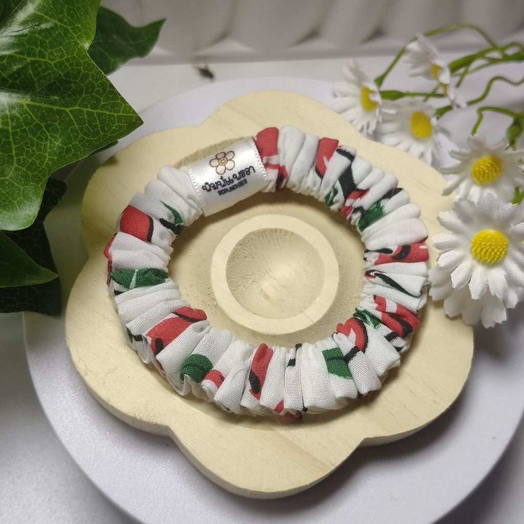 เซ็ต 2ชิ้น รุ่น Mini cotton : พิมพ์แพรวา Scrunchies สำหรับผมปกติ-หนามาก มัดได้2ทบ