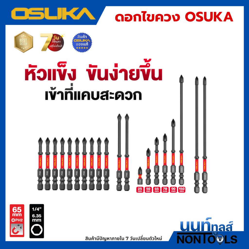 (ถูกสุด)OSUKA X นนท์ทูลส์ OSUKA ดอกไขควงขันสกรู PH2 *มีหลายตัวเลือก* ดอกขันสกรู หัวขันสกรู ดอกไขควงหัวแม่เหล็ก หัวดูดแรง