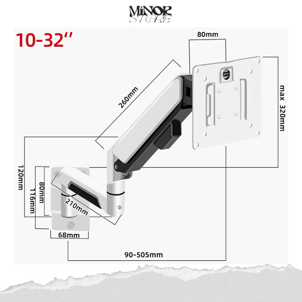 Stand ARM W3 ขาตั้งจอคอมพิวเตอร์ สำหรับติดผนัง รองรับจอขนาด 10-32 นิ้ว