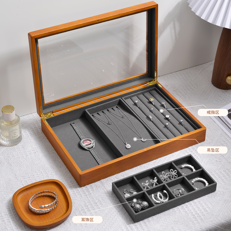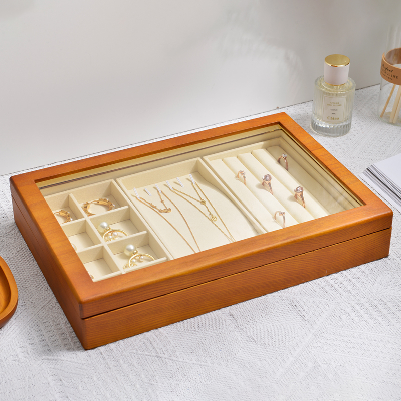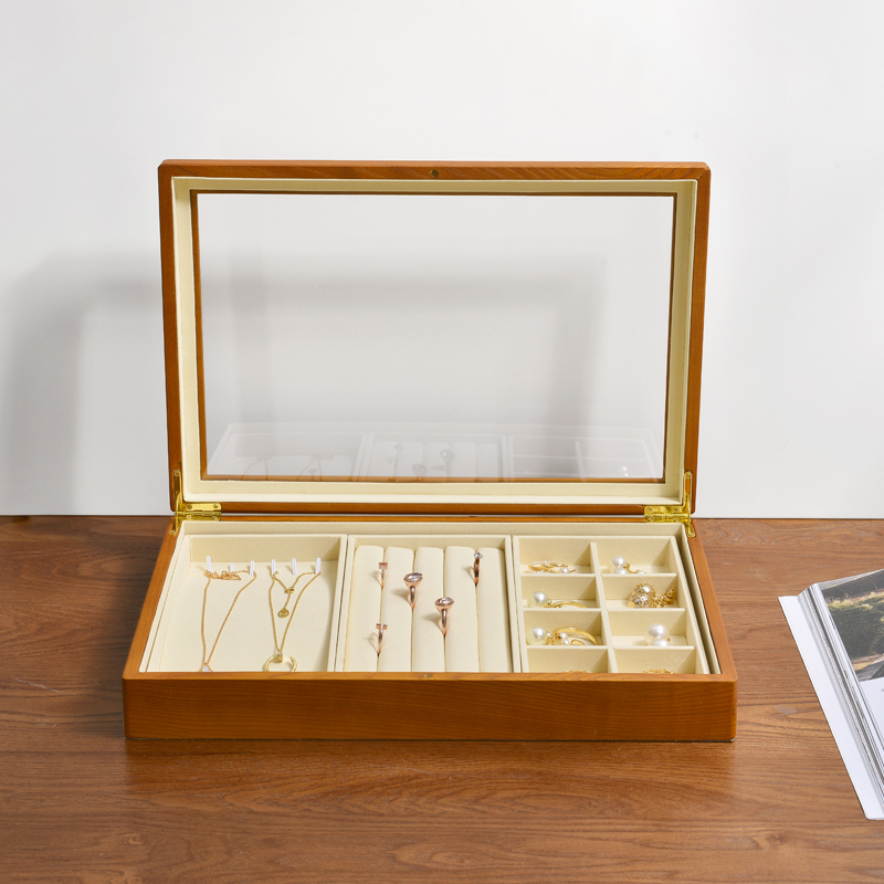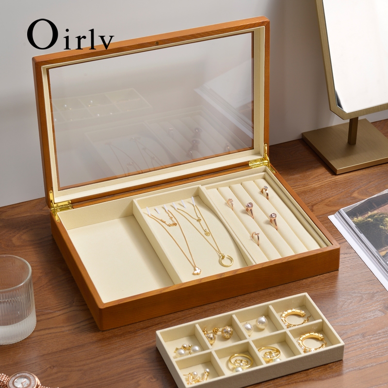 Oirlv กล่องเก็บเครื่องประดับไม้เครื่องประดับหรูหราสําหรับสร้อยคอต่างหู X039