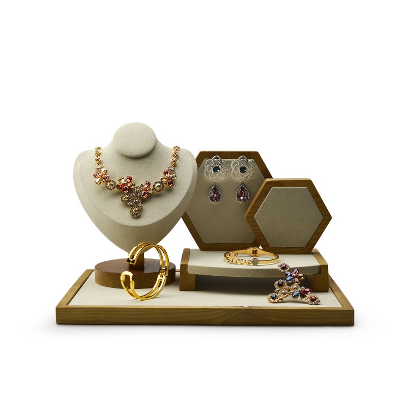 Oirlv ชุดขาตั้งไม้ สําหรับวางเครื่องประดับ กําไลข้อมือ แหวน 2 ชิ้น SM032 PU060