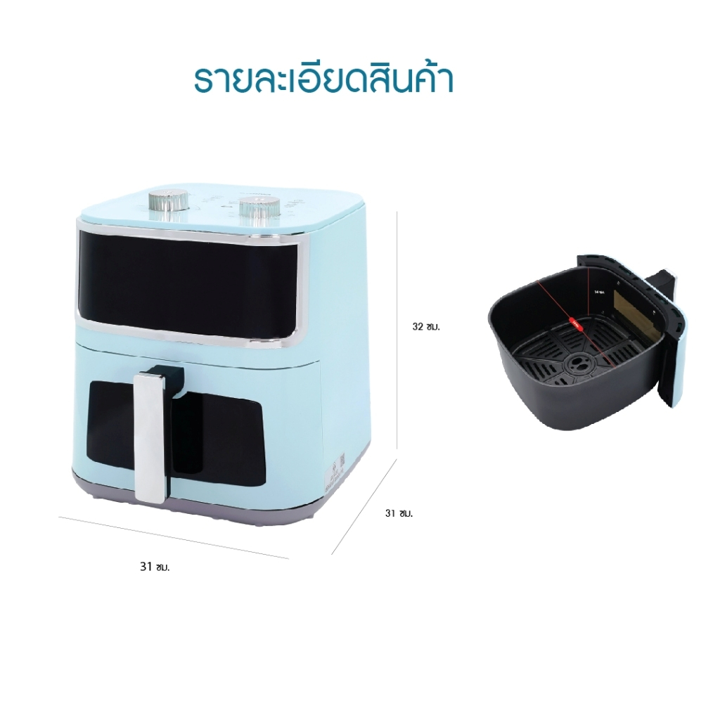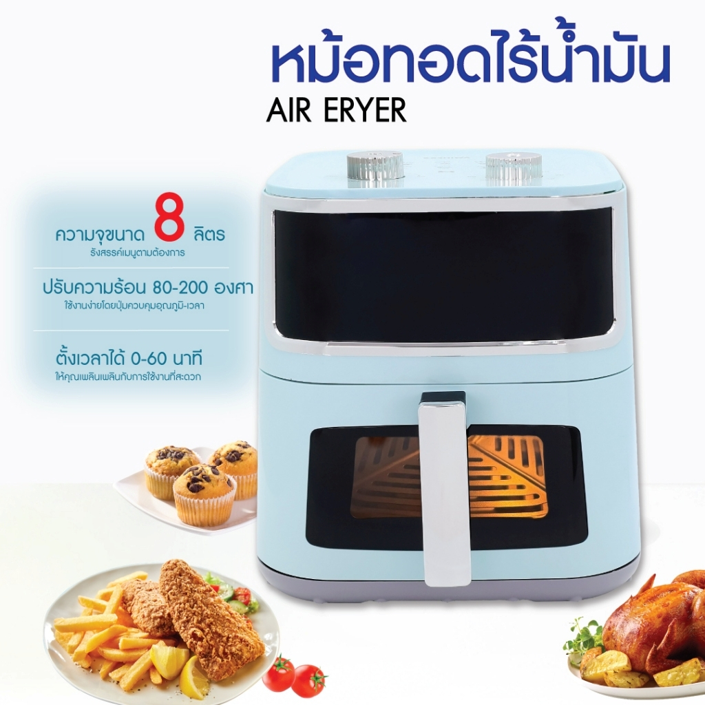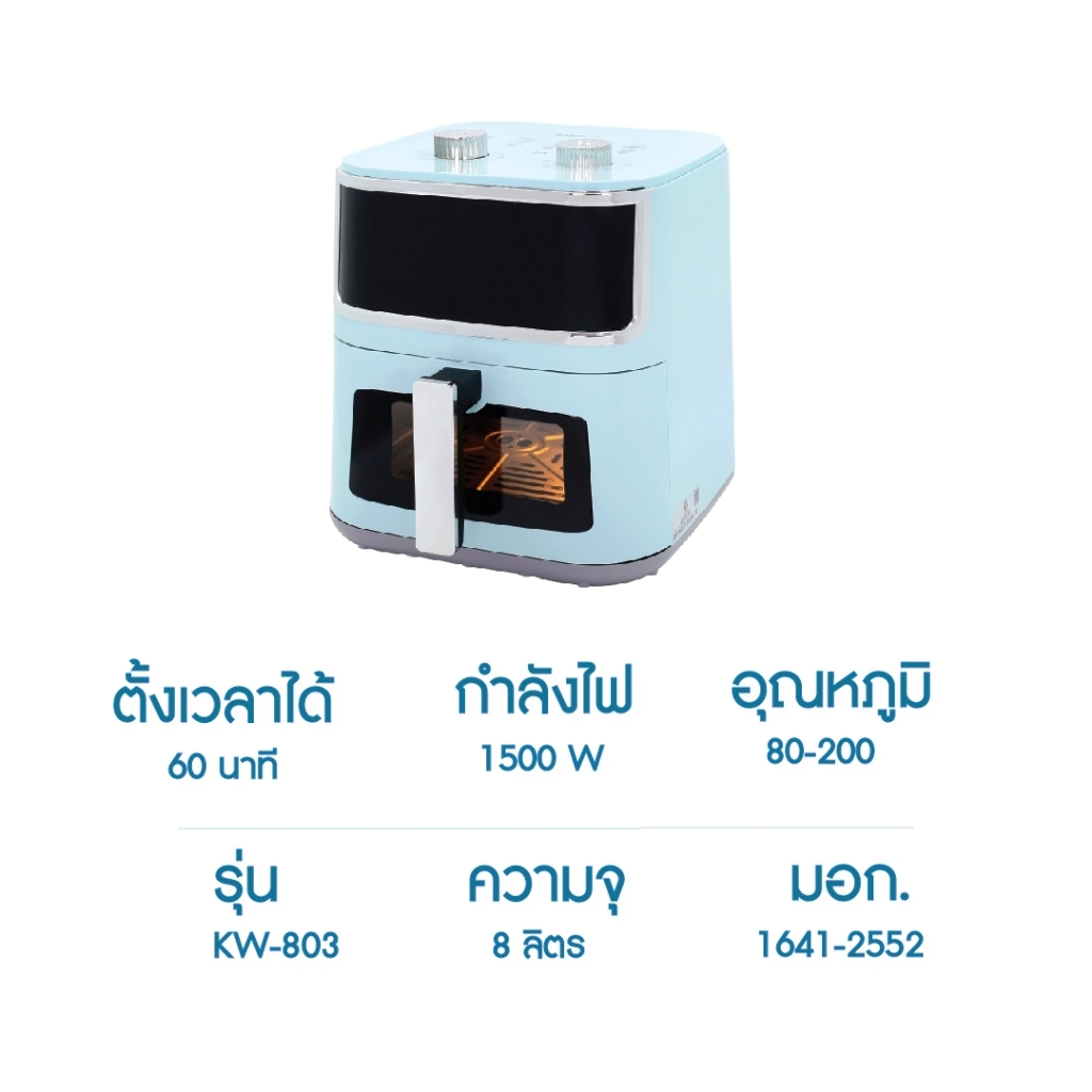 Kashiwa หม้อทอดไร้น้ำมัน รุ่น KW-803 สีฟ้า ขนาด 8 ลิตร กำลังไฟ 1500 วัตต์