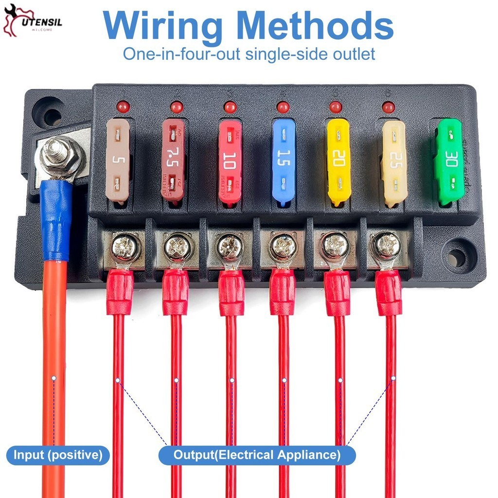 กล่องฟิวส์ 4/6 ทาง 12V ใบมีดฟิวส์บล็อกฟิวส์ พร้อมไฟแสดงสถานะ LED กันน้ํากันฝุ่น สําหรับรถยนต์ เรือ RV