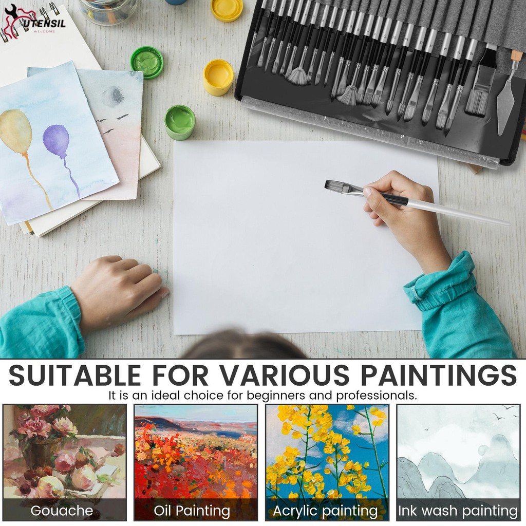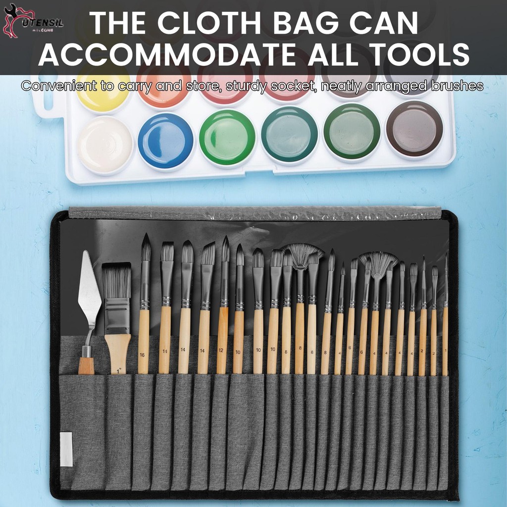 25 ชิ้นแบบพกพาชุดแปรงทาสีประหยัดพื้นที่สีน้ํามันชุดแปรงปฏิบัติภาพวาดซัพพลายกับมีดโกนและถุงผ้า ร้านค้า6315