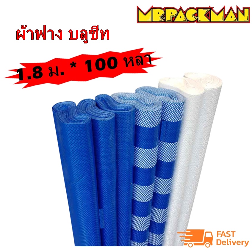 ผ้าฟาง เคลือบ 1 ด้าน สีขาว ขนาด 1.8 เมตร ยาว 100 หลา ผ้าฟางบลูชีท กันแดด คลุมรถ กันฝน ปูพื้น ทาสี