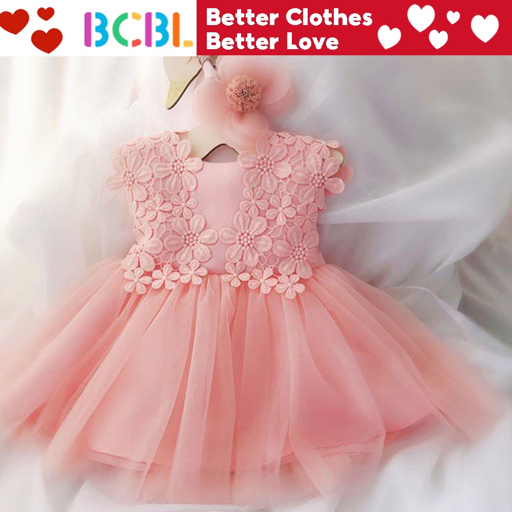 Bcbl ชุดเดรสกระโปรงเจ้าหญิง สีชมพู สีขาว สําหรับเด็กผู้หญิง อายุ 1-2 ปี