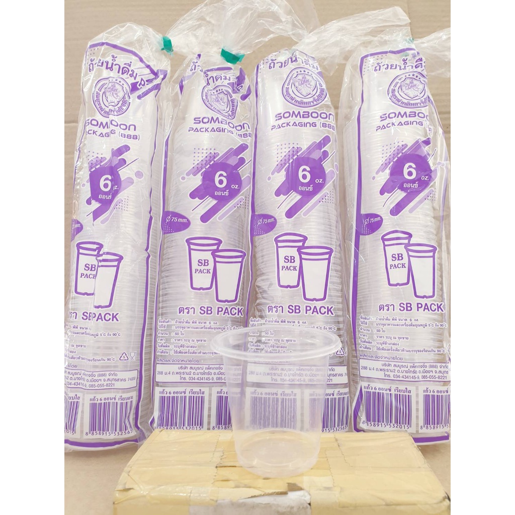 แก้วพลาสติก แก้ว 6 ออนซ์ ปาก75mm. เรียบใส ยี่ห้อSB ยกลัง 2,000ใบ