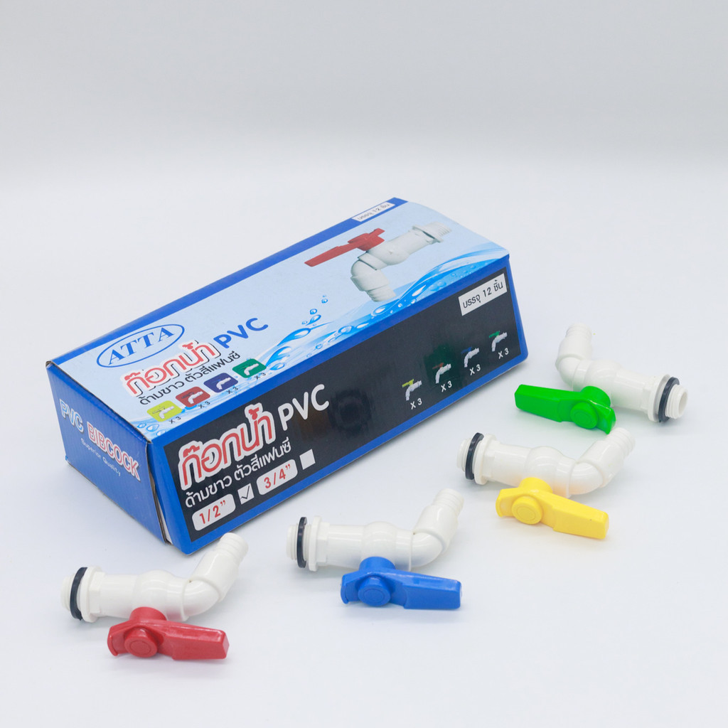 (1ชิ้น) ก็อกน้ำ PVC 1/2" ตัวขาว ด้ามคละสี ก็อกแฟนซี 4 หุน ก๊อกน้ำพลาสติก ก๊อกน้ำ