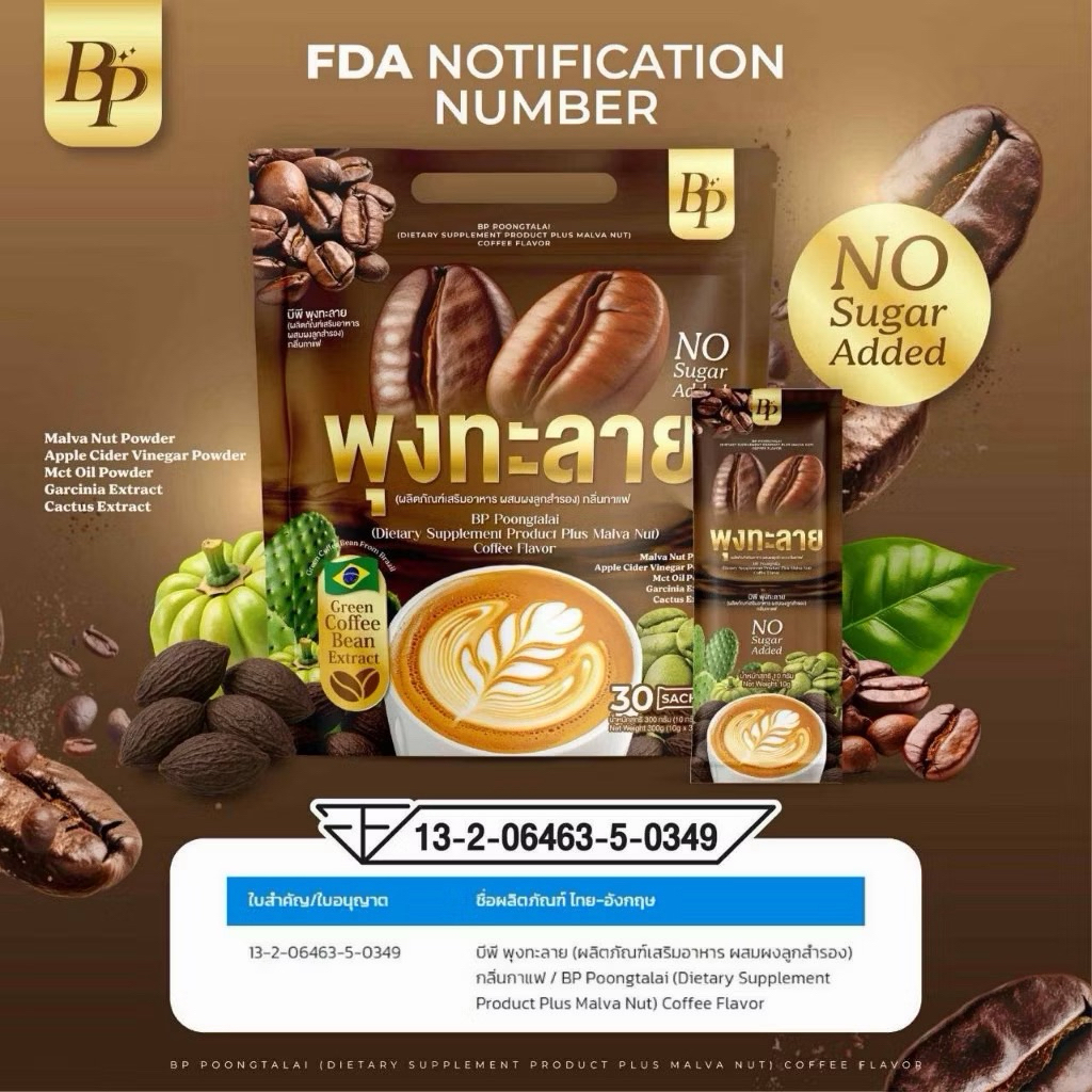 🤎[โปร 1 แถม 1+ของแท้จากโรงงาน]กาแฟบีพี กาแฟBP POONGTALAI บรรจุ 30 ซอง