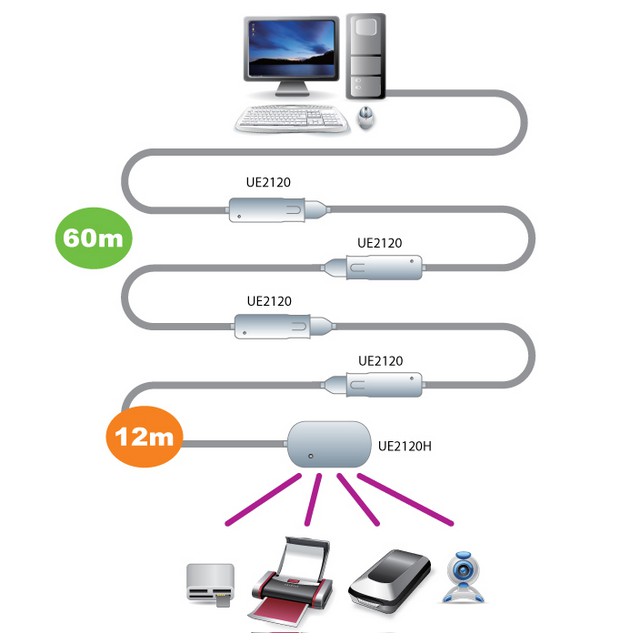 ATEN USB 2.0 Extender 12 เมตร ขยายสัญญาณ USB Extension Cable รุ่น UE2120 ประกัน 3 ปี
