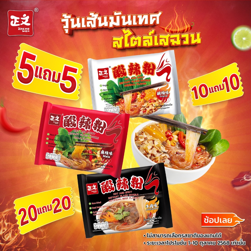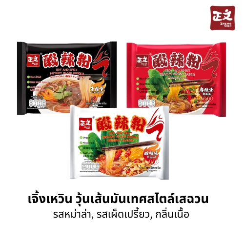 Zhengwen เจิ้งเหวินวุ้นเส้นมันเทศกึ่งสำเร็จรูป รสหม่าล่า รสเผ็ดเปรี้ยว กลิ่นเนื้อ ขนาด 95 กรัม แพ็ค 5 และ 10 แพ็ค