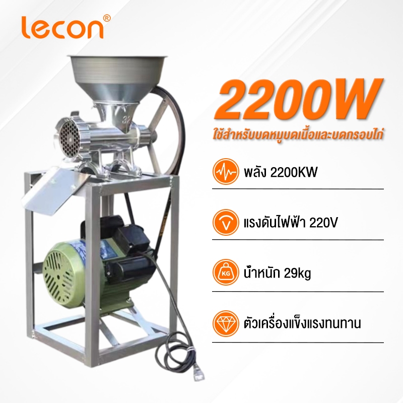 LECON ครื่องบดหมู 3300W บดหยาบ ละเอียด โครงกระดูก บดมันหมู กระเทียม บดปลาร้า บดปลา