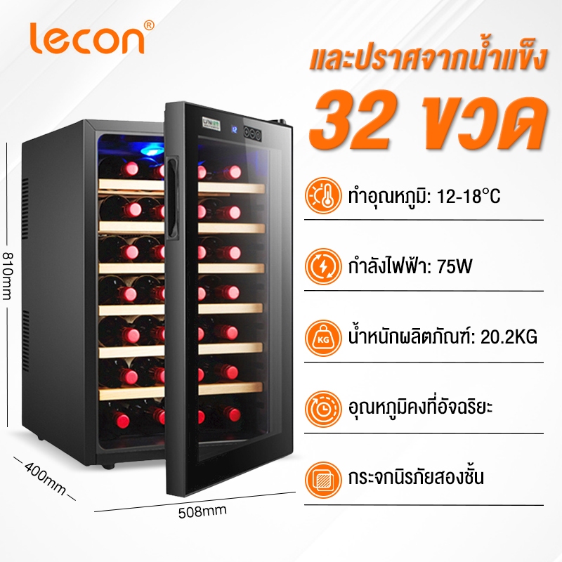 Lecon ตู้แช่ไวน์ ตู้ไวน์ ไม้บีสแบบหนา คุณภาพสูง ควบคุมอุณหภูมิได้แม่นยำ เก็บไวน์ได้มากถึง 16-32 ขวด