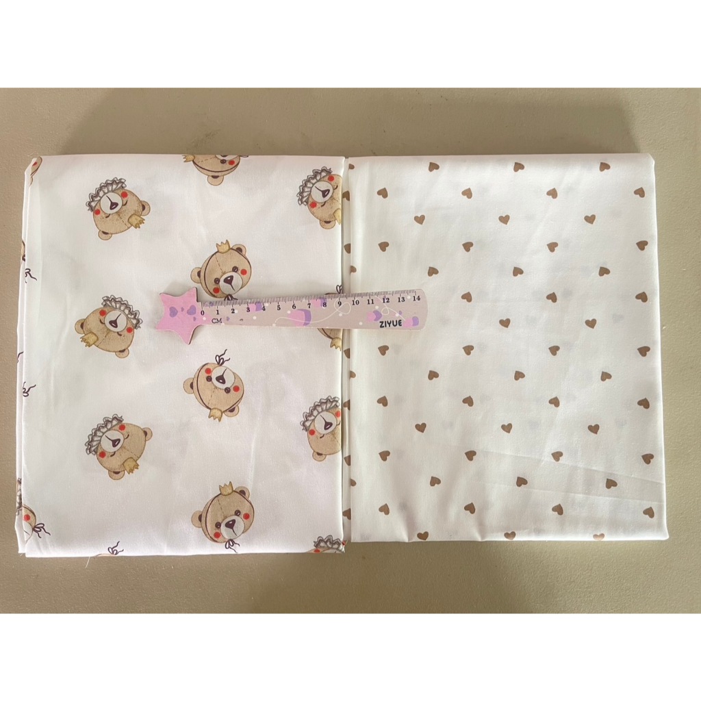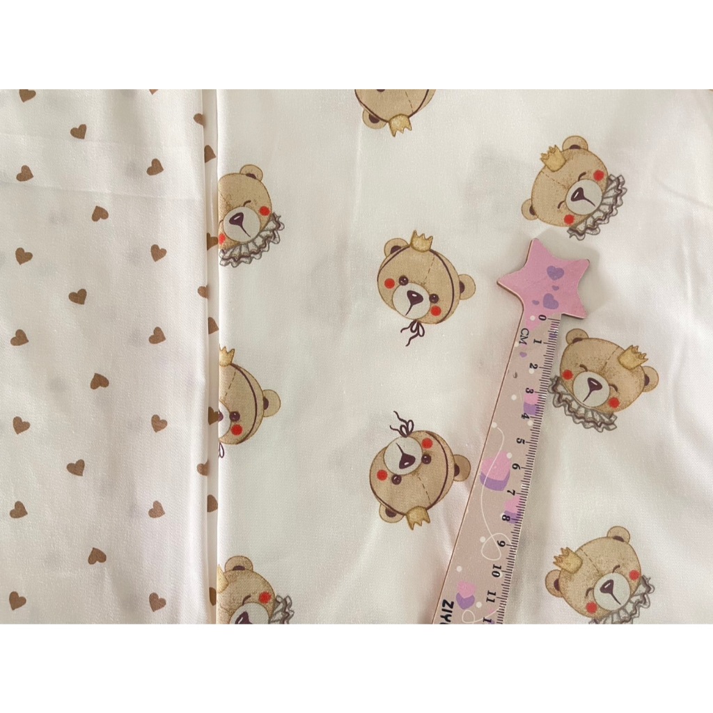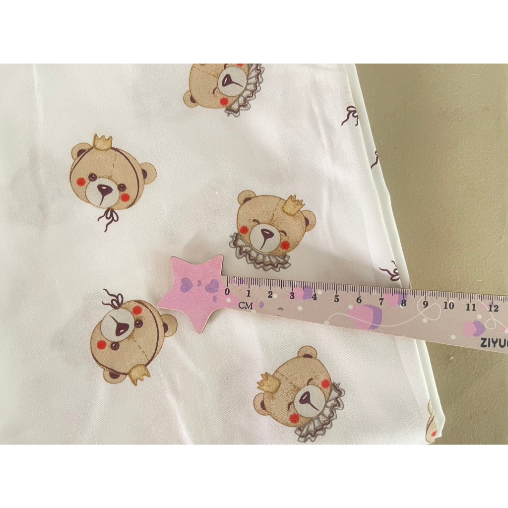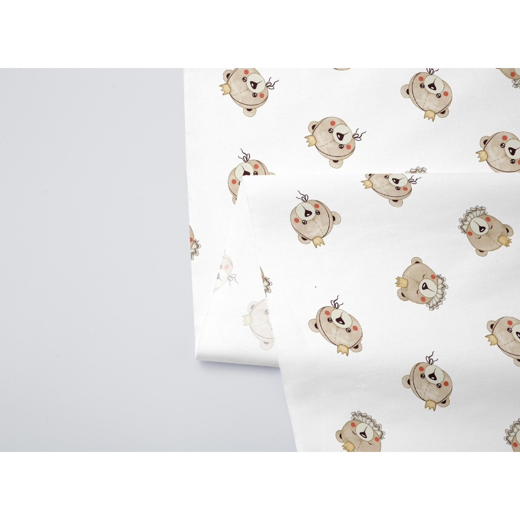 ผ้าคอตตอน 100% คอตตอนทอทวิล ผ้าหน้ากว้าง 1.6 เมตร ลายตุ๊กตาหมี