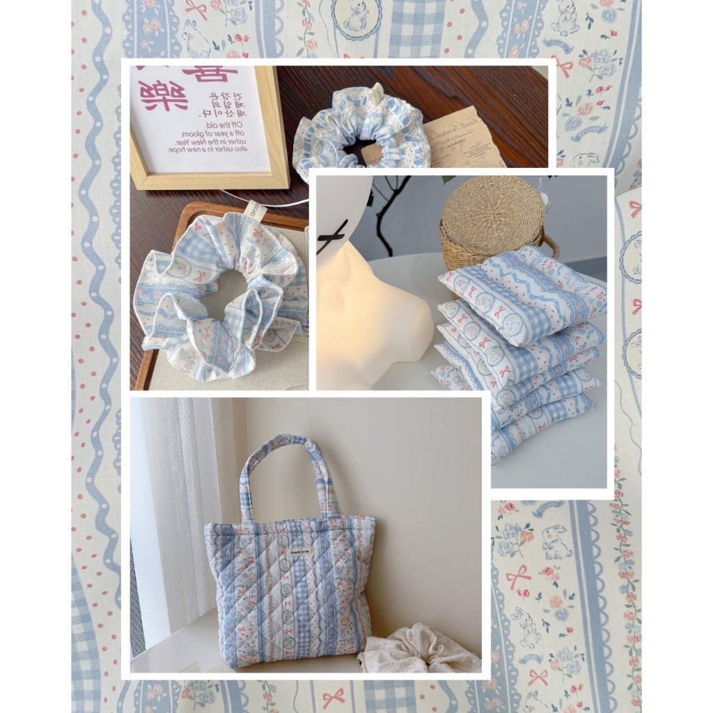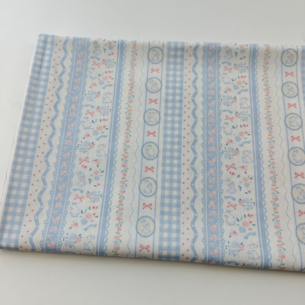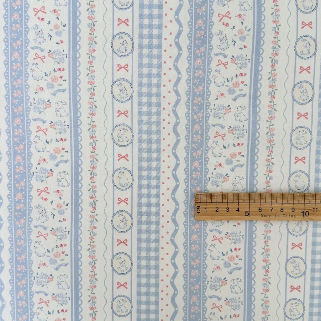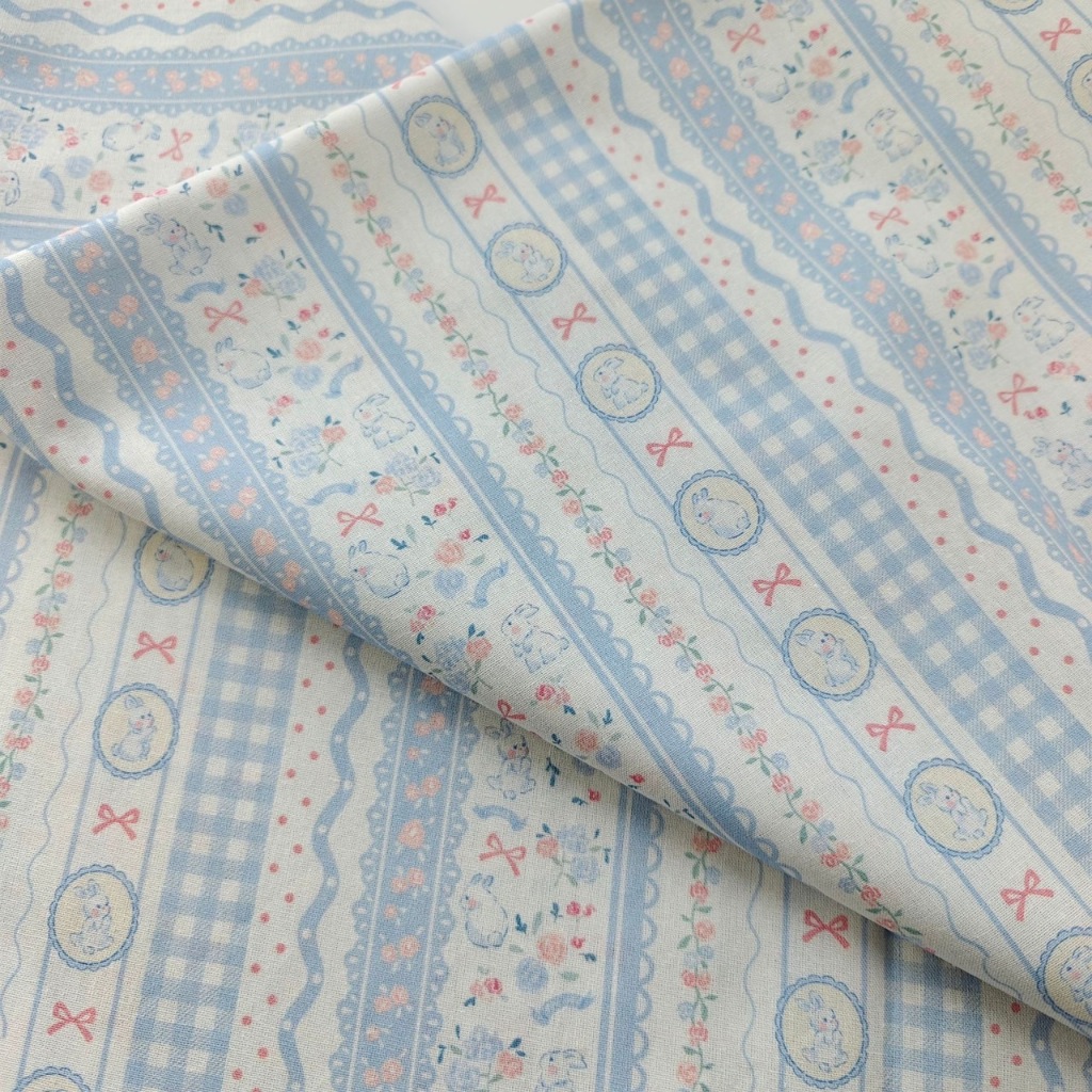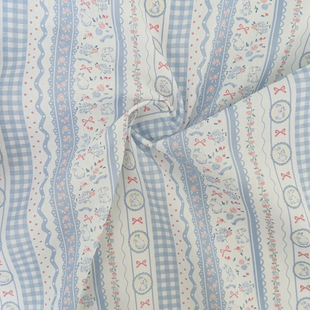 ผ้าคอตตอน 100% cotton poplin ตัดขายเป็นเมตร หน้ากว้าง 145 เซนติเมตร ลาย Rabbit bow flower