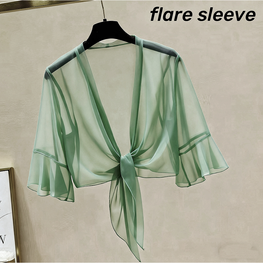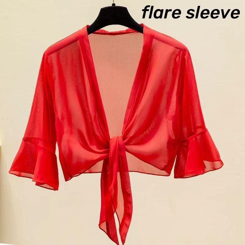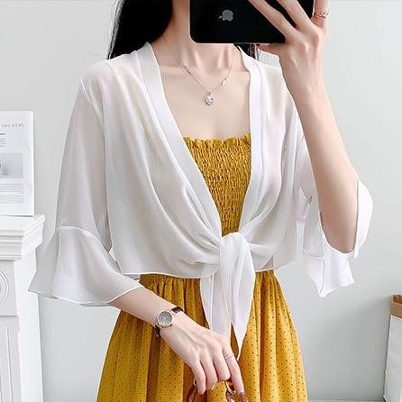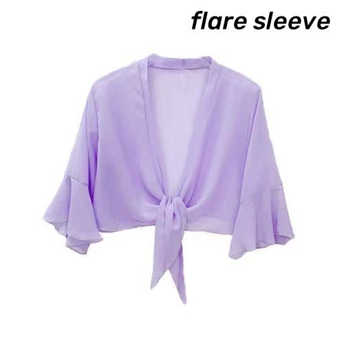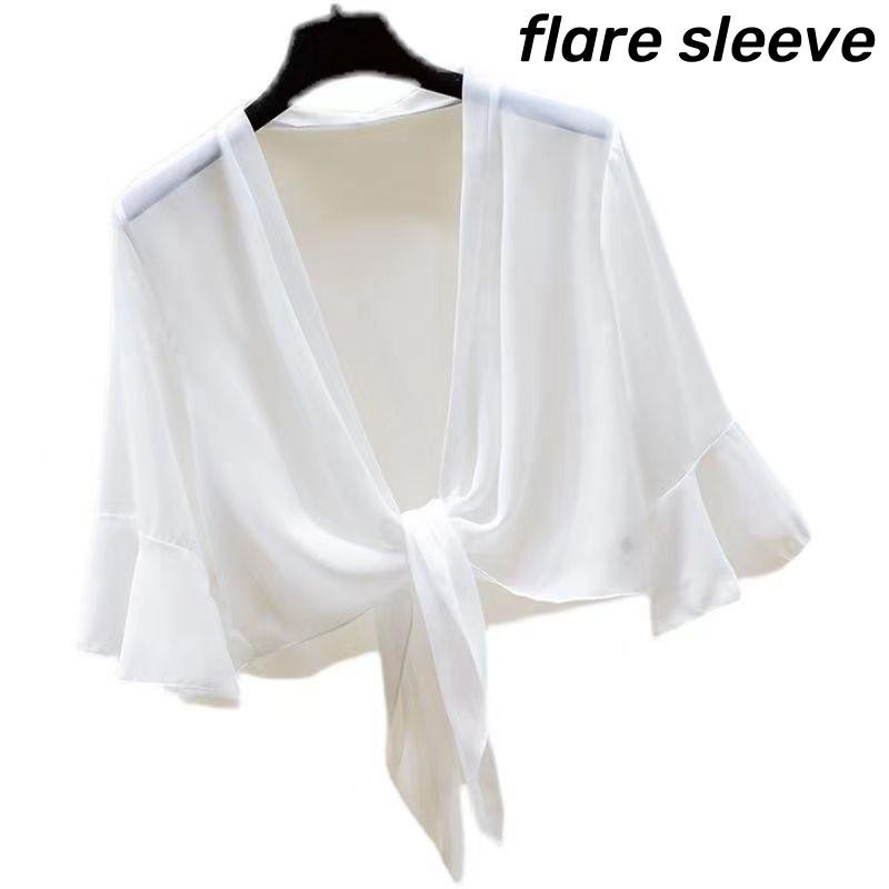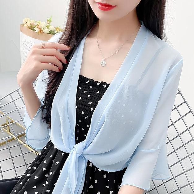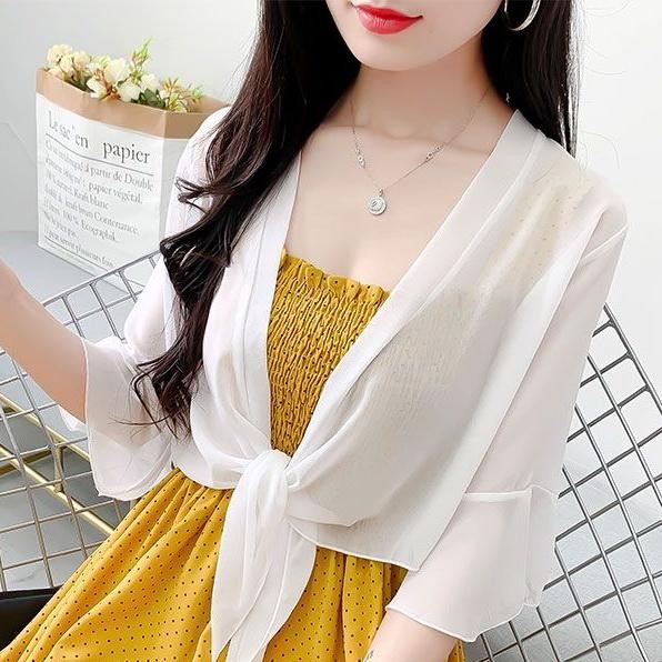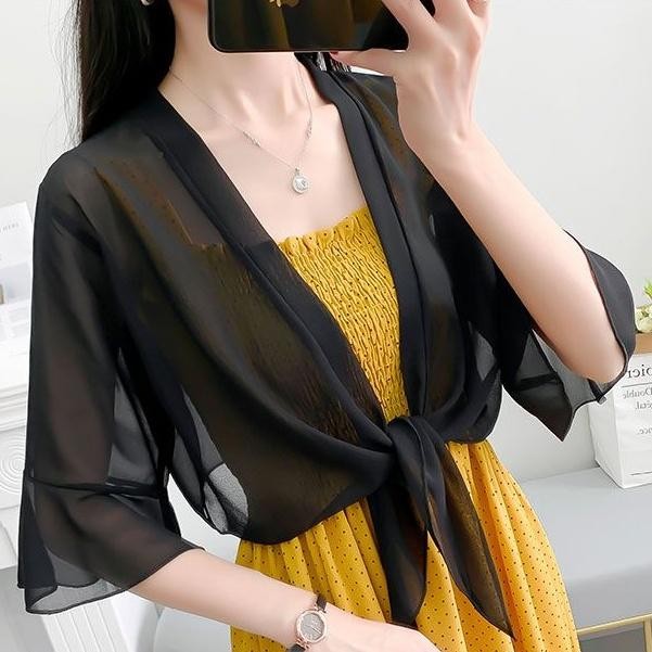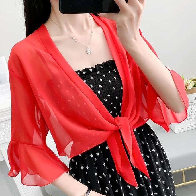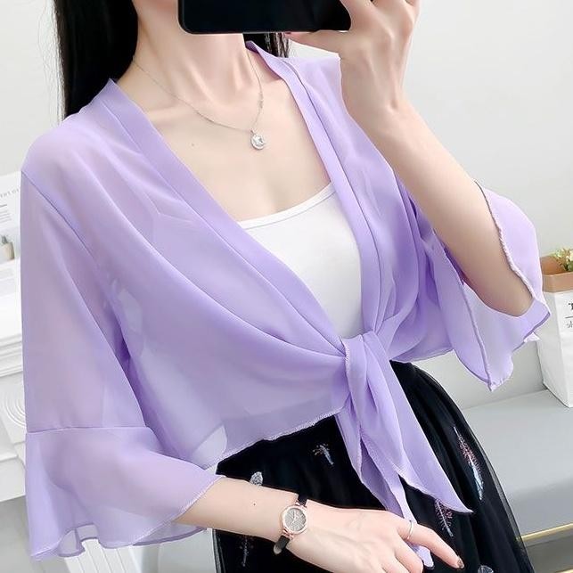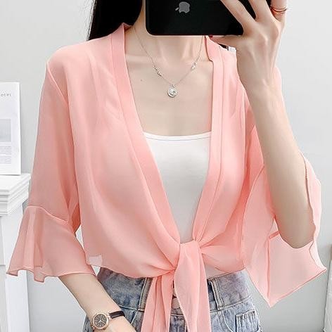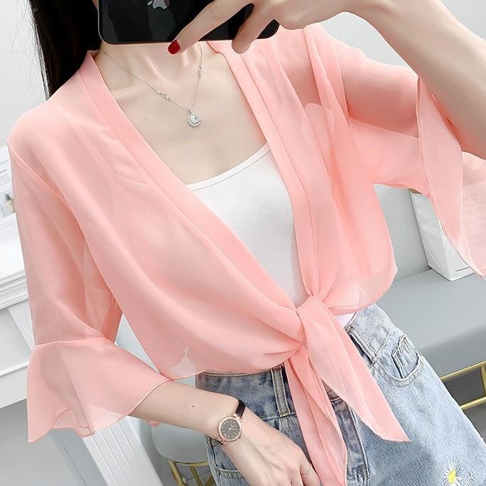 เสื้อคาร์ดิแกนผ้าชีฟองสีทึบผ้าคลุมไหล่ฤดูร้อนเสื้อหรูหราหลวมเสื้อกันแดดแบบบางสําหรับผู้หญิง