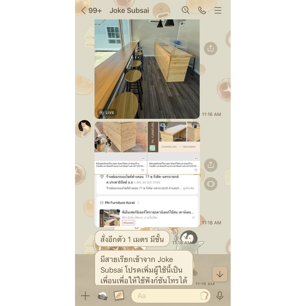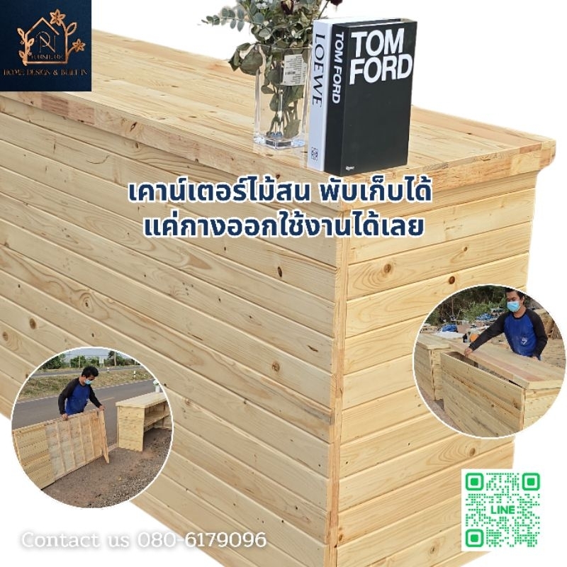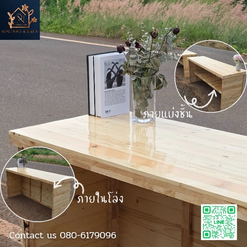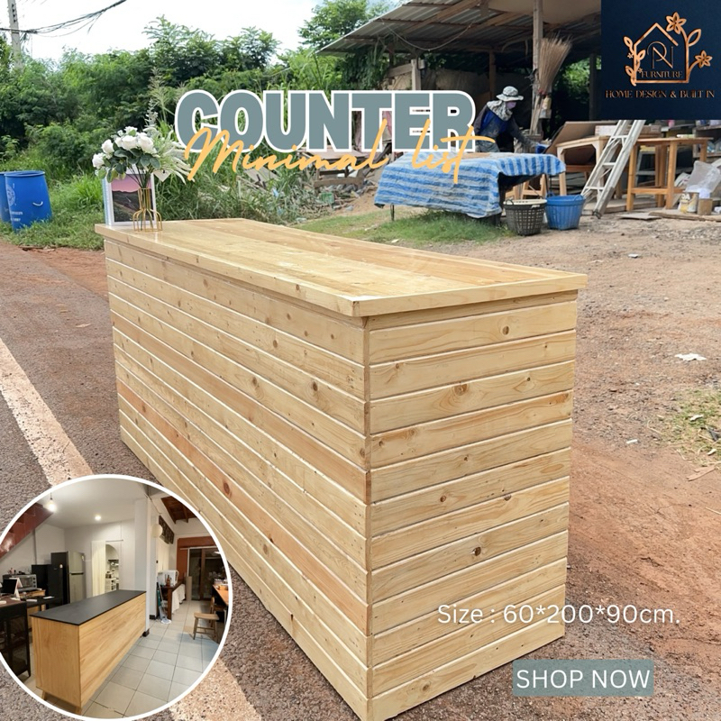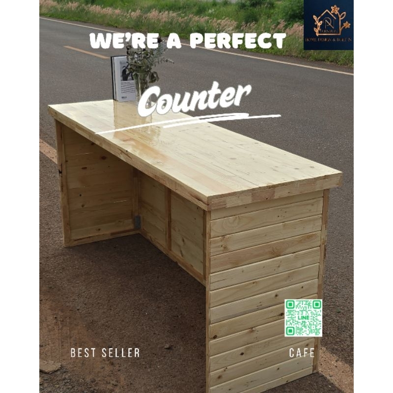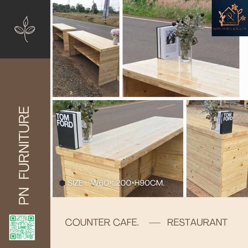 พีเอ็นเฟอร์นิเจอร์โคราช/เคาน์เตอร์ไม้สน เคาน์เตอร์ร้านก๋วยเตี๋ยว เคาน์เตอร์ร้านอาหารเคาน์เตอร์ cafe 60*200*90cm.