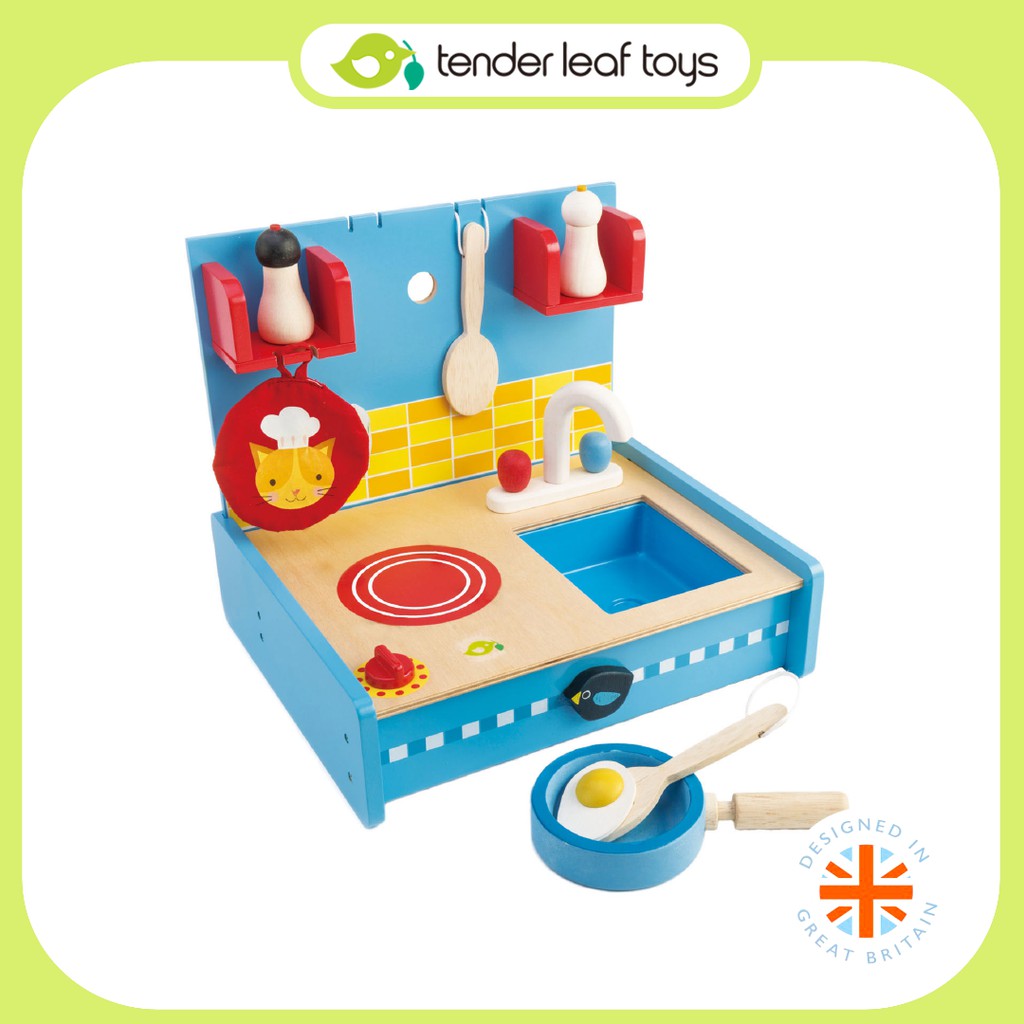 Tender Leaf Toys ของเล่นไม้ ชุดครัวเด็ก ของเล่นบทบาทสมมติ ชุดครัวแบบพกพา Pop Up Kitchen