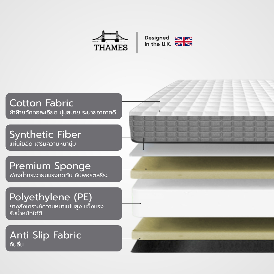 Thames ที่นอนยาง PE แท้ 100% รุ่น Emir หนา 6 นิ้ว หุ้มผ้านอกกันไรฝุ่น ขนาด 3/ 3.5/ 5 /6ฟุต