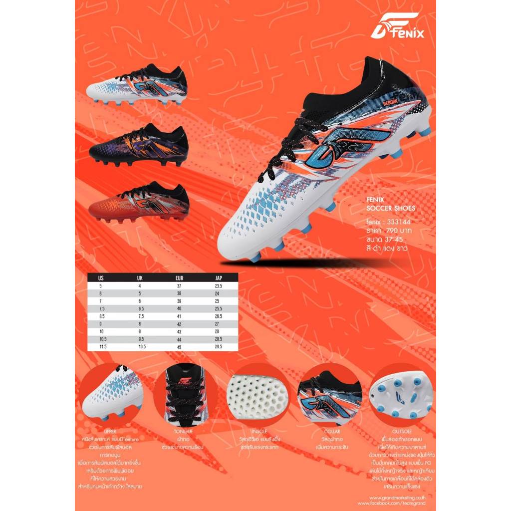 Grand Sport 333144 FENIX รุ่น REBORN รองเท้าฟุตบอล แกรนด์สปอร์ต หุ้มข้อ ของแท้ 100%