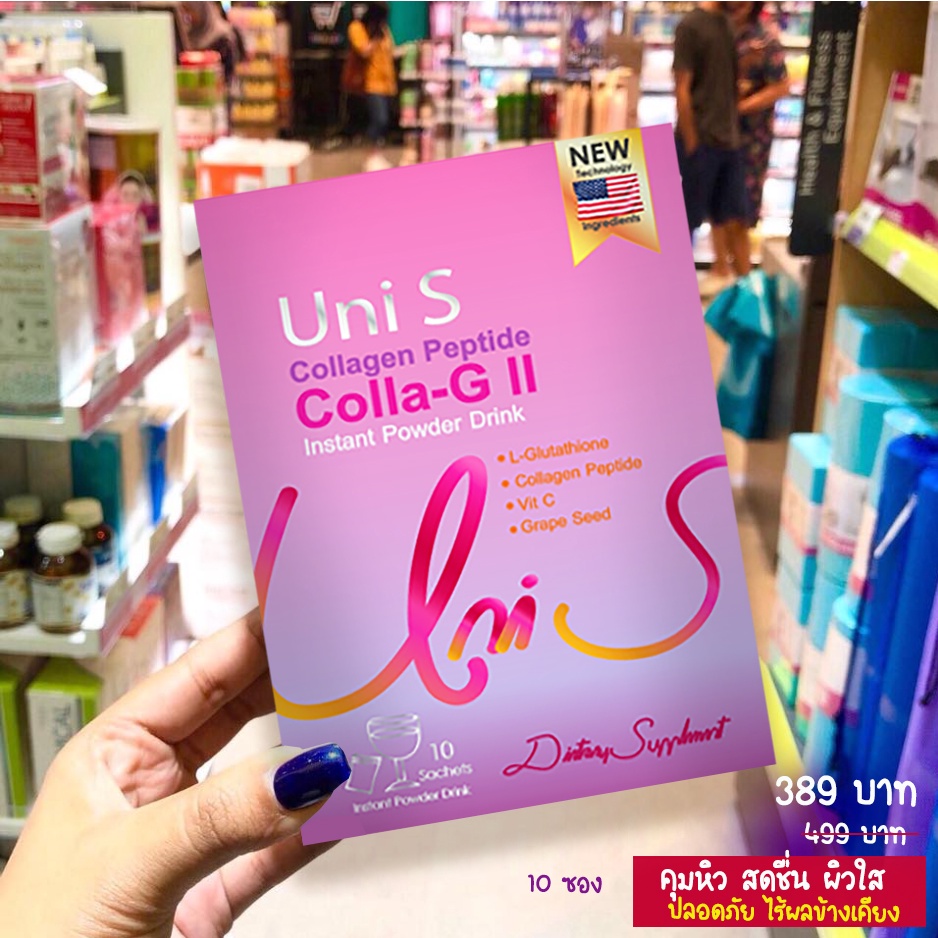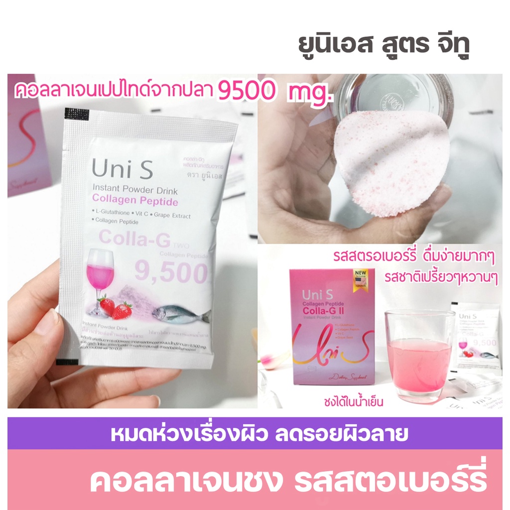 Uni S คอลล่า-จีทู บรรจุ 10 ซอง แพ็ค 3 กล่อง ยูนิเอสคอลลาเจน ปราศจากน้ำตาล ช่วยให้ผิวเรียบเนียน นุ่ม ชุ่มชื่น ริ้วรอย