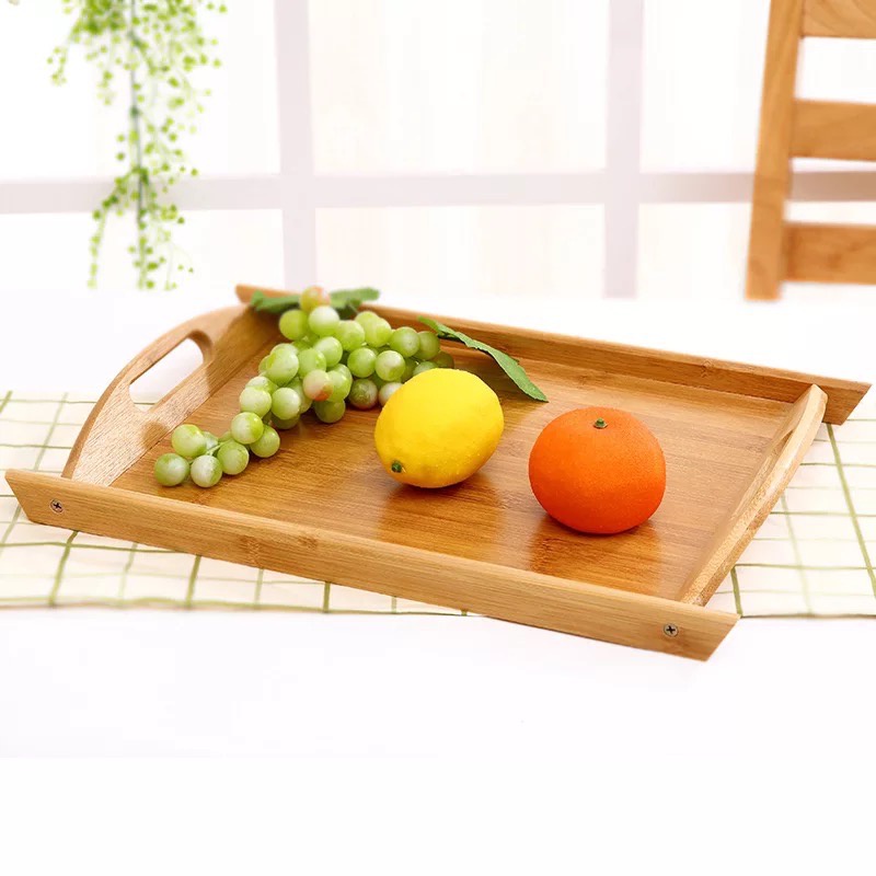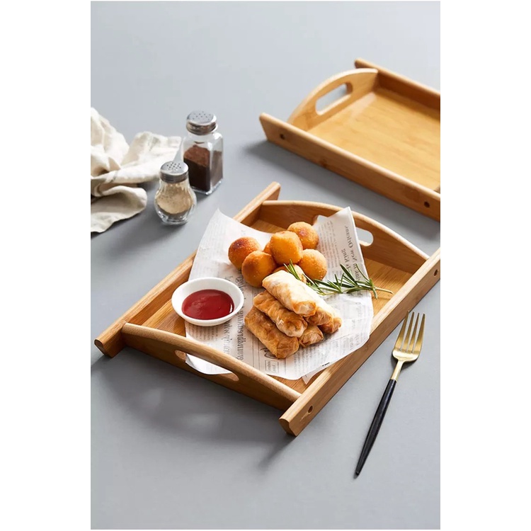 ถาดไม้ไผ่ขนาดใหญ่พร้อมหูจับ ถาดไม้ใส่อาหาร ถาดเสิร์ฟ ถาดรองอาหาร📢🚚พร้อมส่ง**