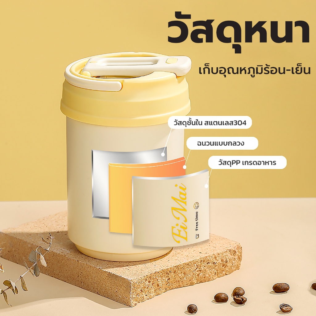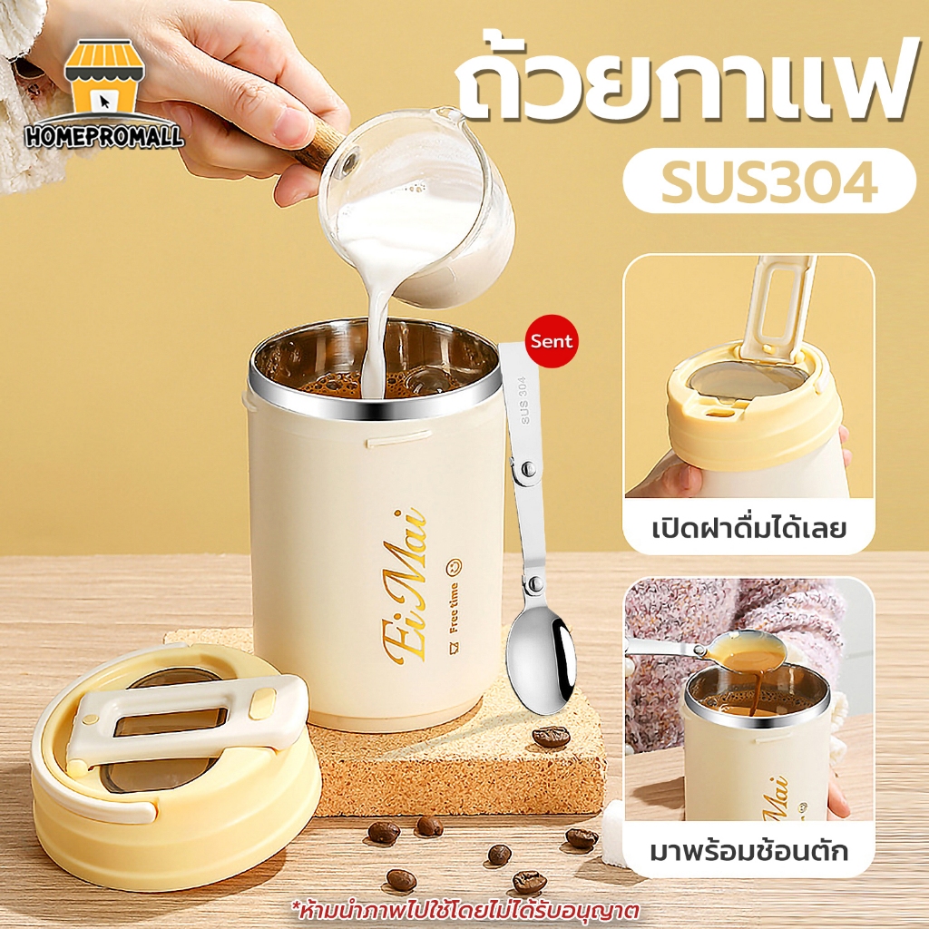 ถ้วยกาแฟสแตนเลส SUS304 ขนาด 450มล แก้วกา แฟสแตนเลส Coffee Mug แก้วเก็บความร้อน แก้วกาแฟพกพา