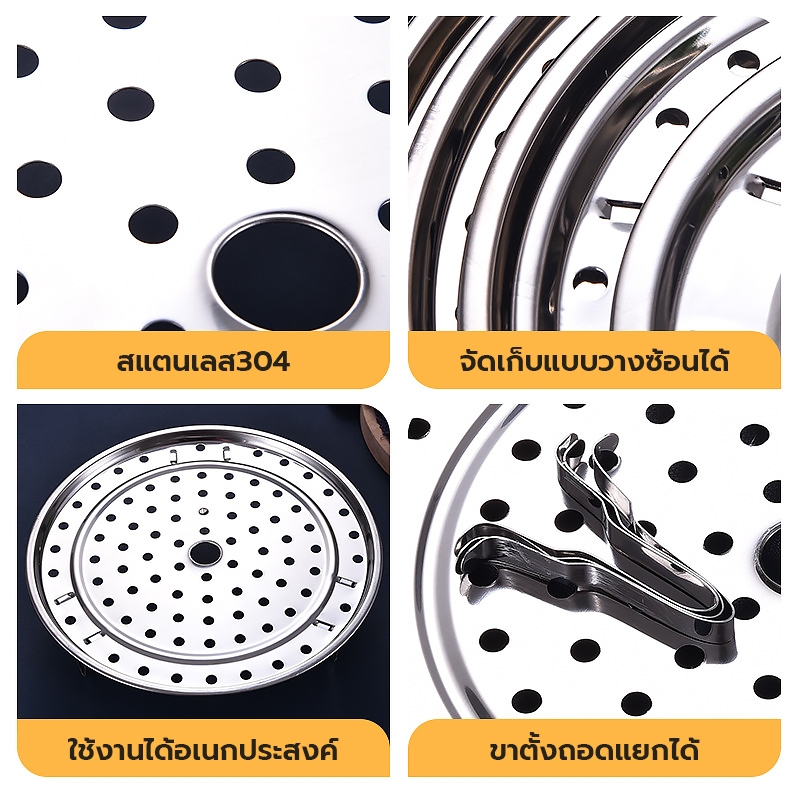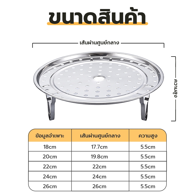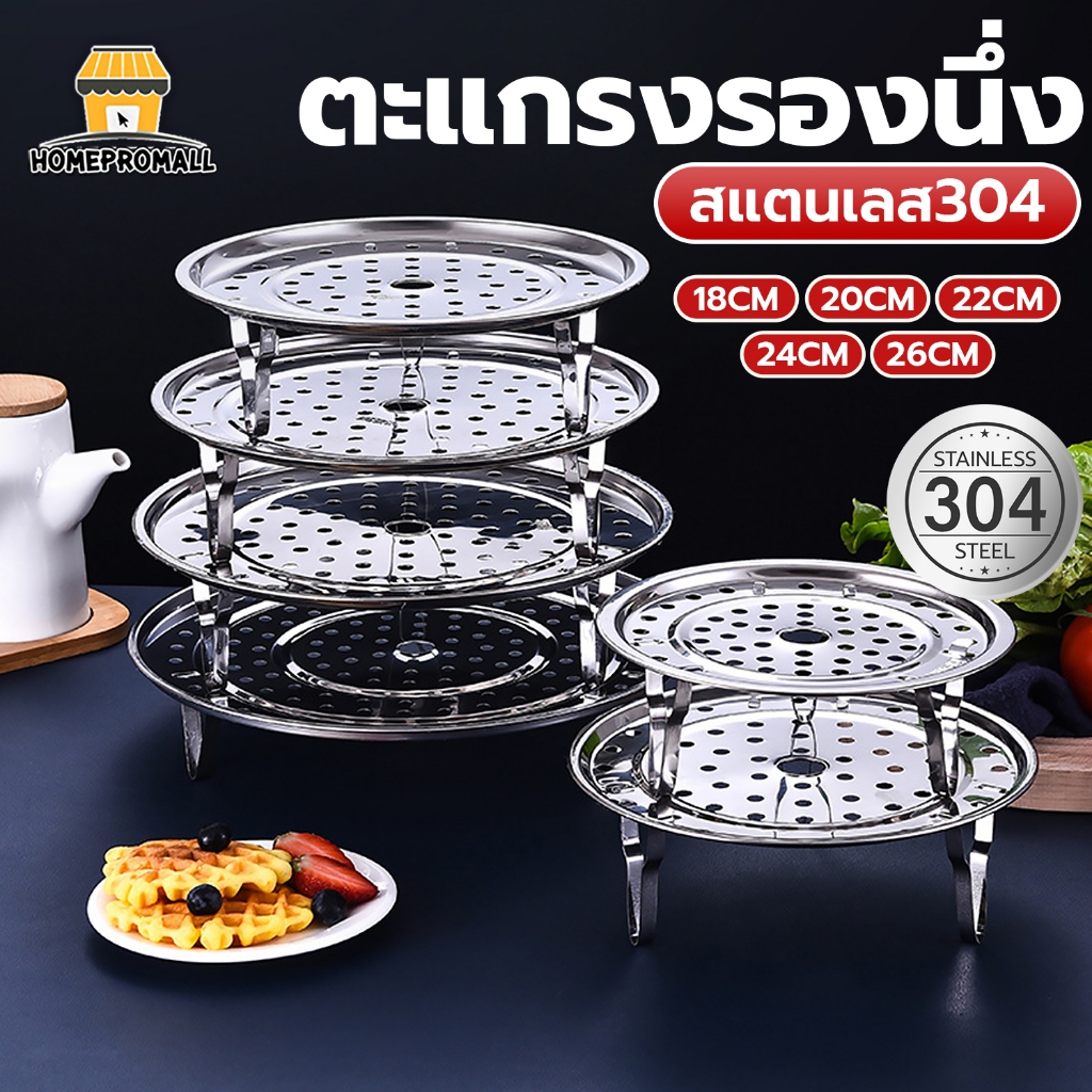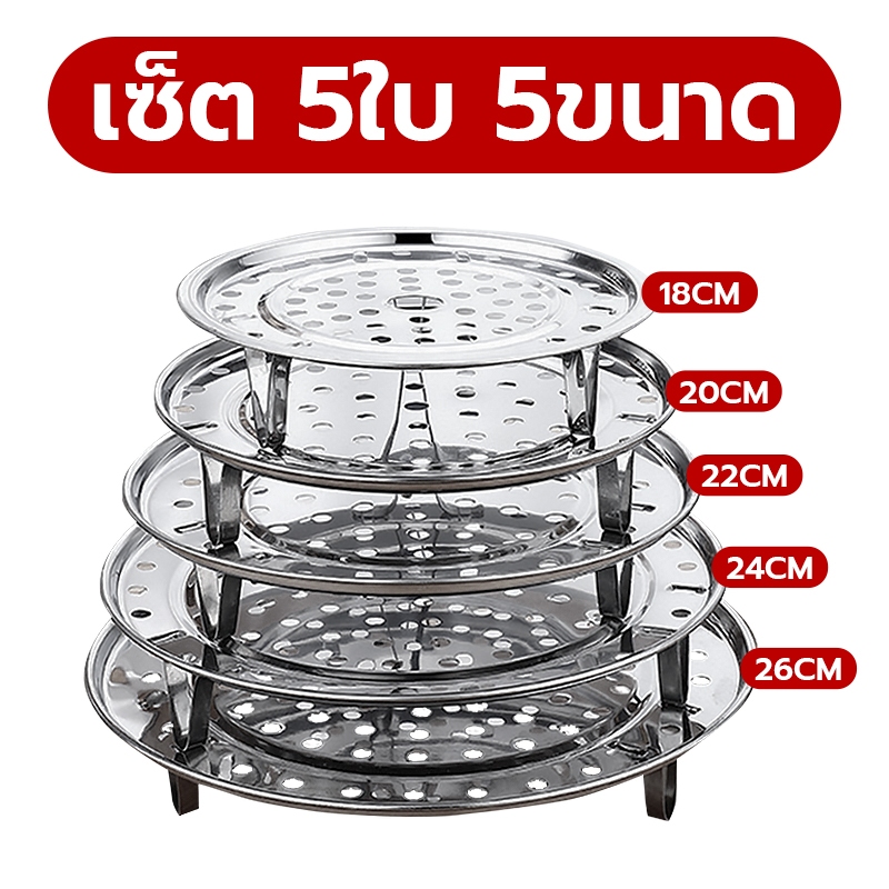 ตะแกรงรองนึ่งสแตนเลส ชุด5ใบ-5ขนาด 18/20/22/24/26ซม. มีขาตั้ง ถอดได้ ถา ดรองนึ่ง ซึ่งอเนกประสงค์